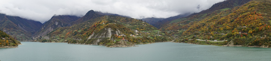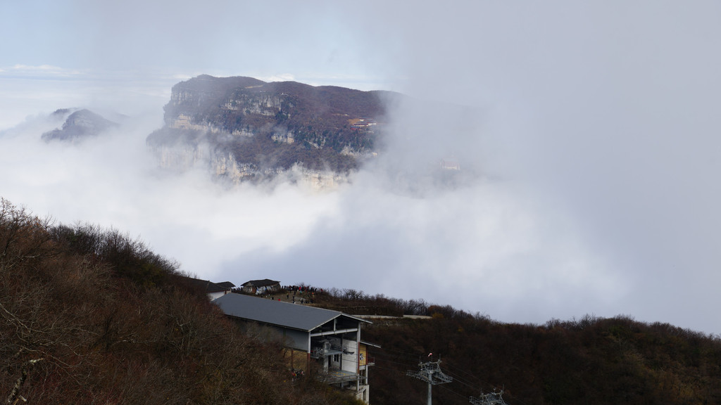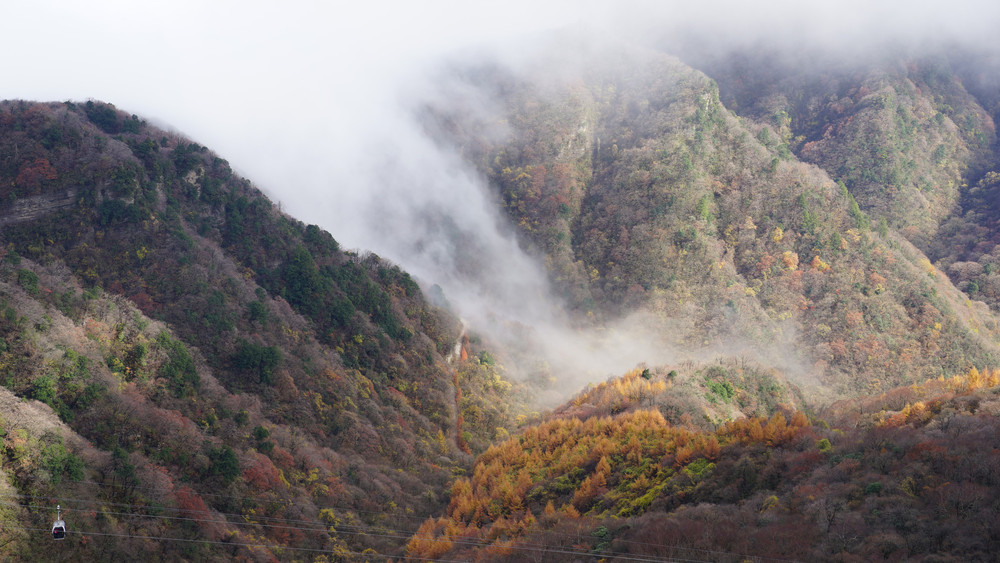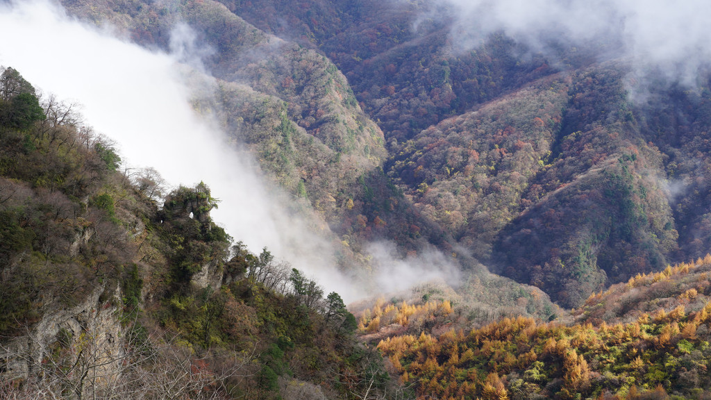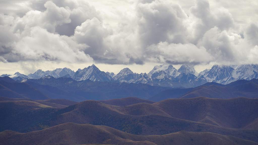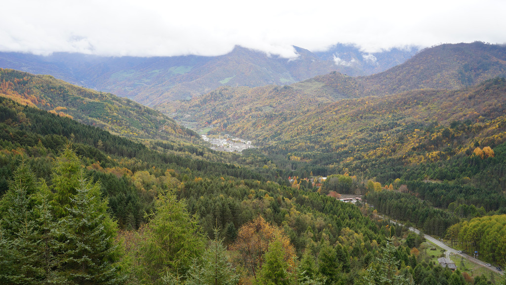 高山起伏,云腾雾蒸,木格措景区就在下面、
