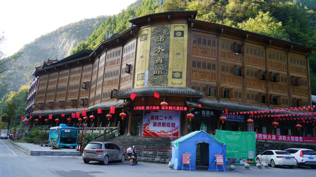 从诺水镇出发不多时就能到游客中心。米仓山的山,十八月潭的水,剩下就是诺水河的洞。今天主要玩云龙湖和狮子二个景点,再乘一下绝壁悬崖电梯。游毕还有400多公里路要开,今晚将在绵阳的江油住宿。