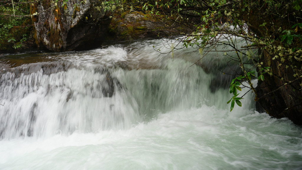 最美的还是一路朝下的杜鹃峡、千瀑峡,雷声轰呜,水流喘急,两边树林茂密。