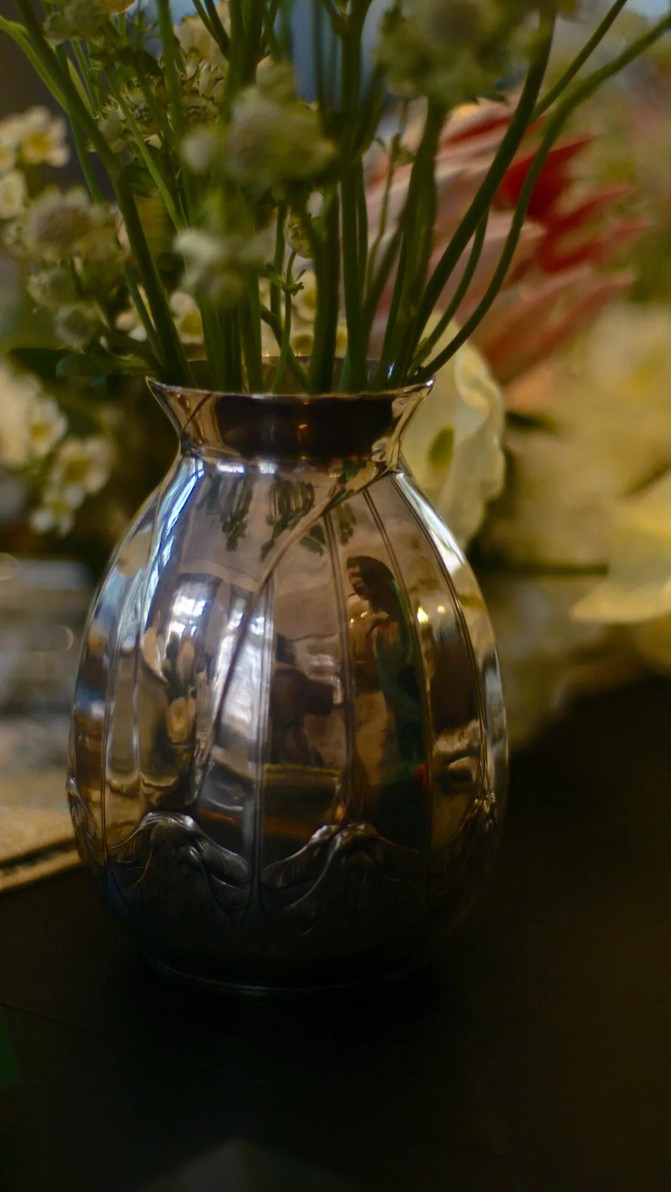 此件镀银花瓶“垂花”为昆庭代表性新艺术运动风格,曲线线条自由流畅, 花朵叶饰自然生动,细节与层次感表现上佳。器型饱满典雅,体现欧洲资产阶级 不凡品味。