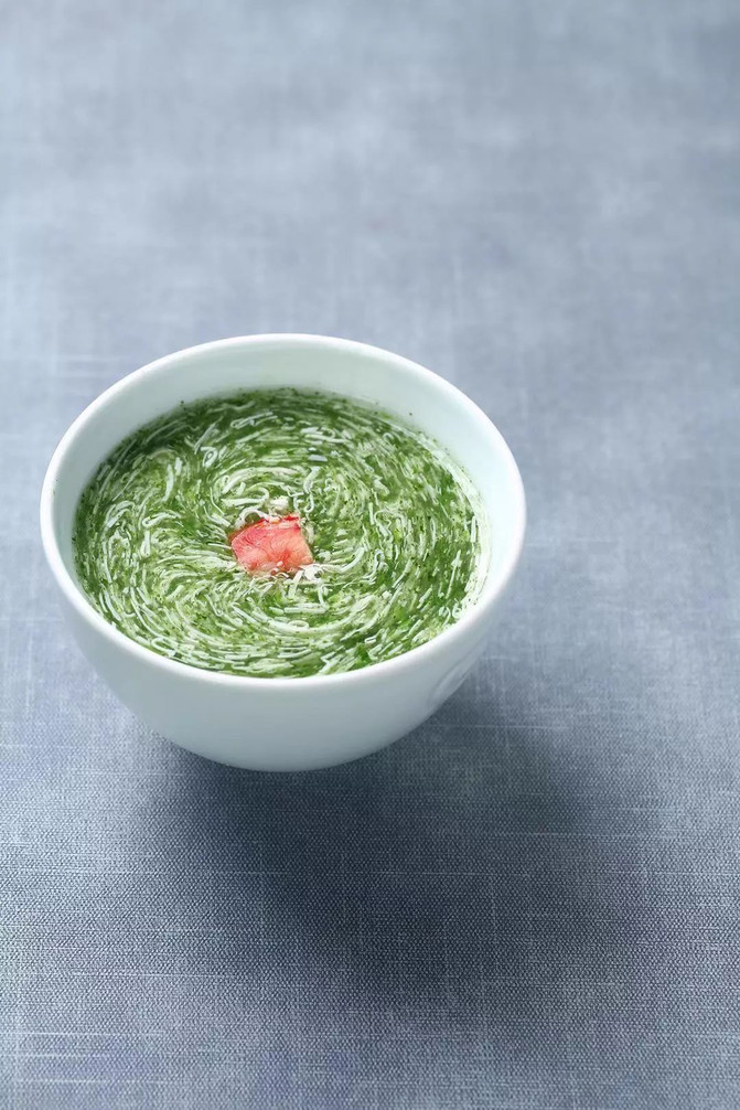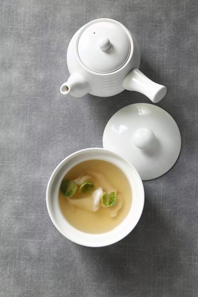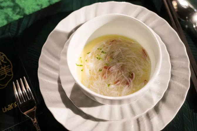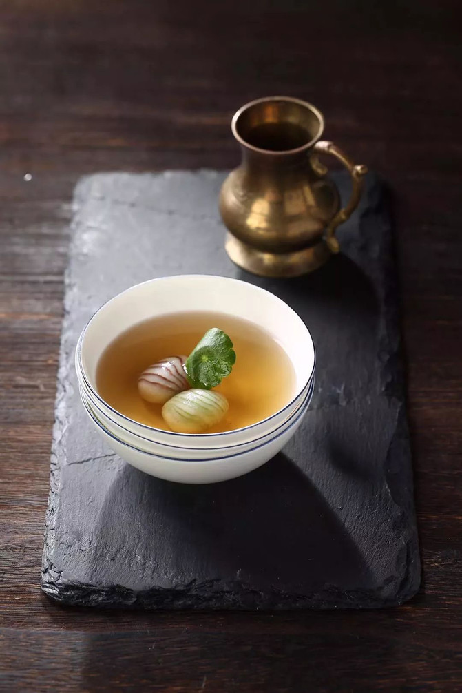 民国时期对于宴席的品质十分讲究, 这从迎宾前菜可以看出,其不仅是整桌宴席的基调, 也是影响宾客食欲的环节。追求口味和视觉双重极致美感的前菜, 便是民国尚美精神。一抹风光, 绿蜡红玉,觥筹杯盏。与河相呼应的还有秦淮的汤宴。一盏汤,一阙词,一段佳话。