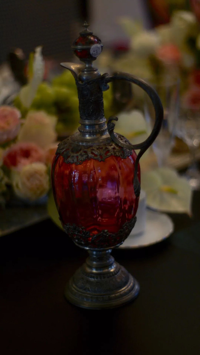 用利摩日鎏金杯喝咖啡,揣摩丢勒的版画成为她聚会的标准姿势。不经意一瞥,插花的瓶子也是百年。藏品目前在“红公馆艺文空间”里。