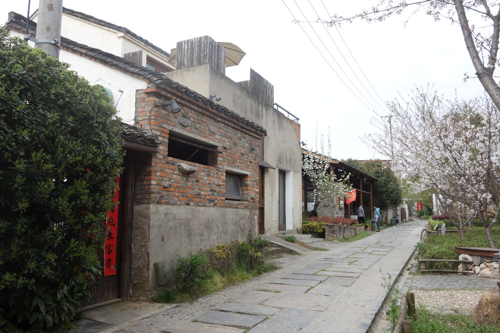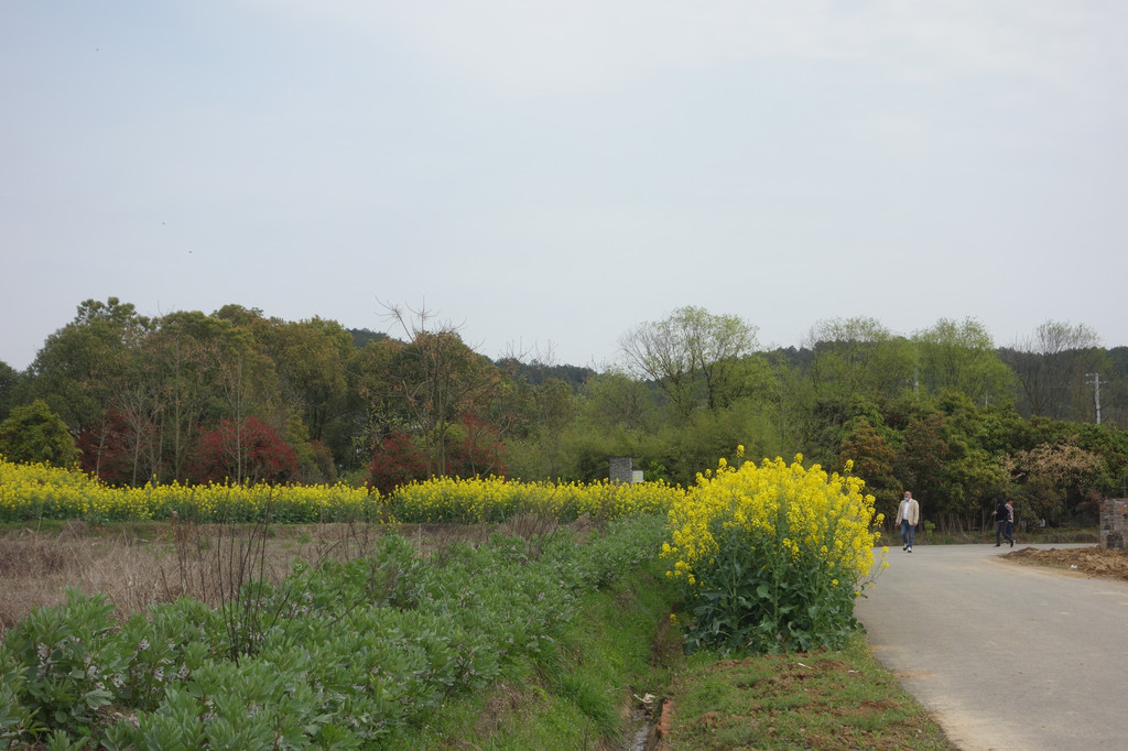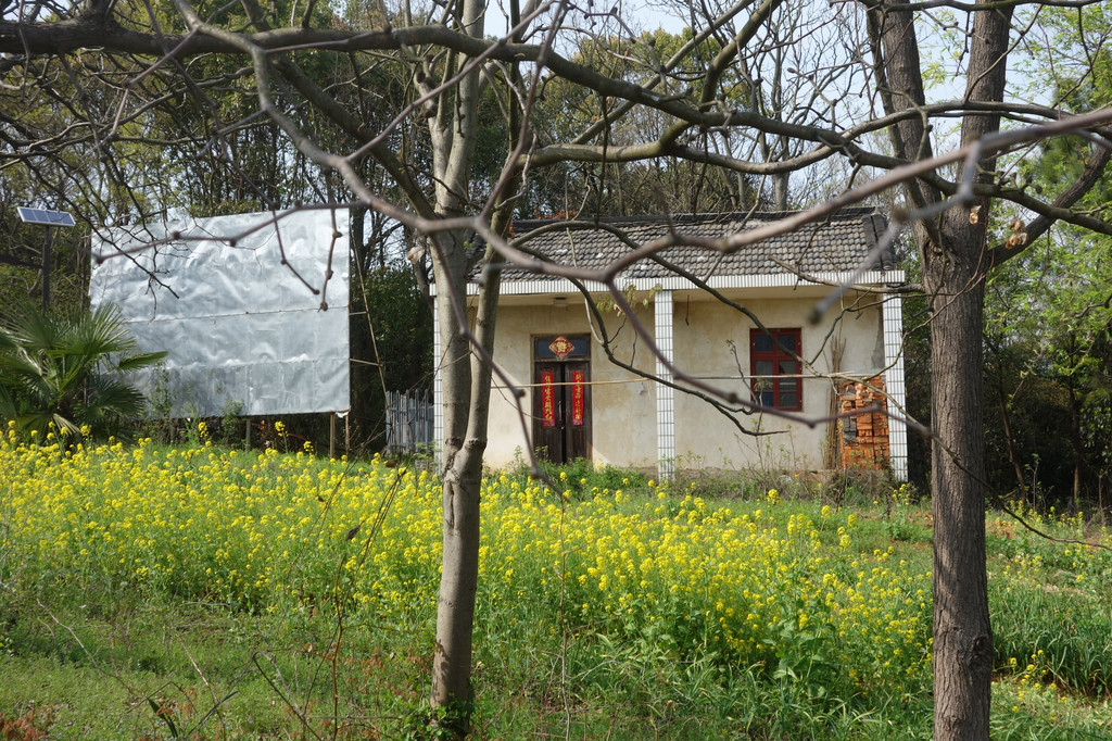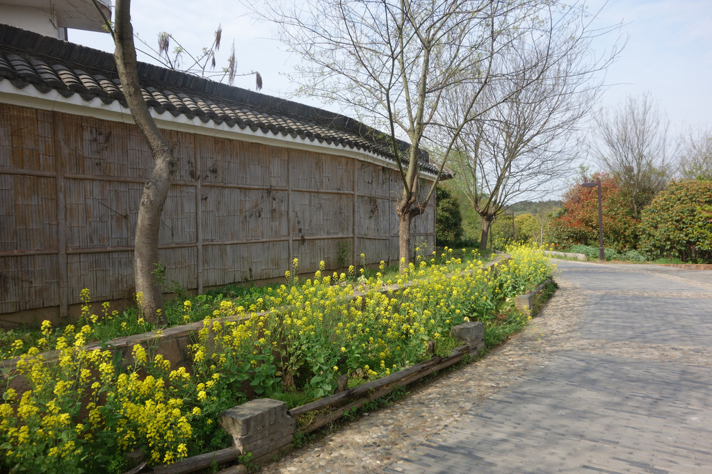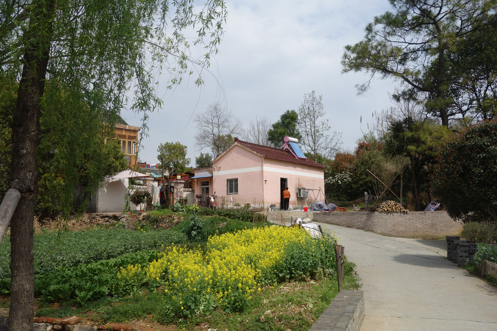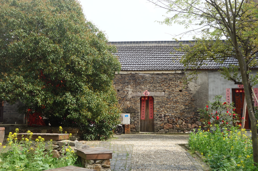 这座古朴的村落,处处充满了田园气息。白色的屋舍,斑驳的木门,一对红色的对联,屋前的金黄的油菜花,有一股江南的味道。