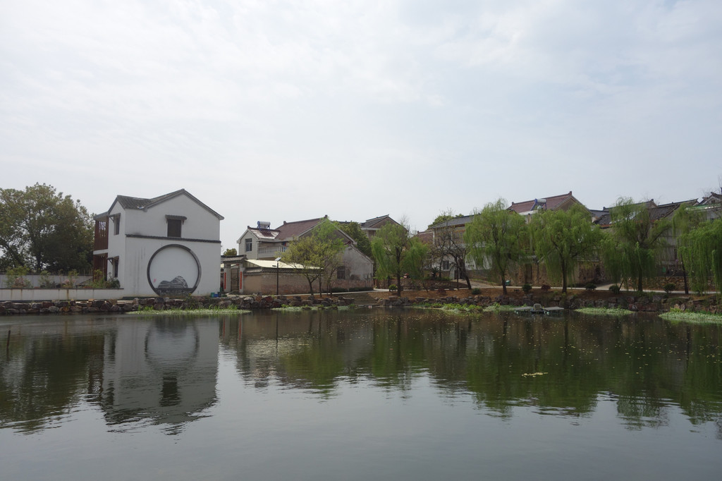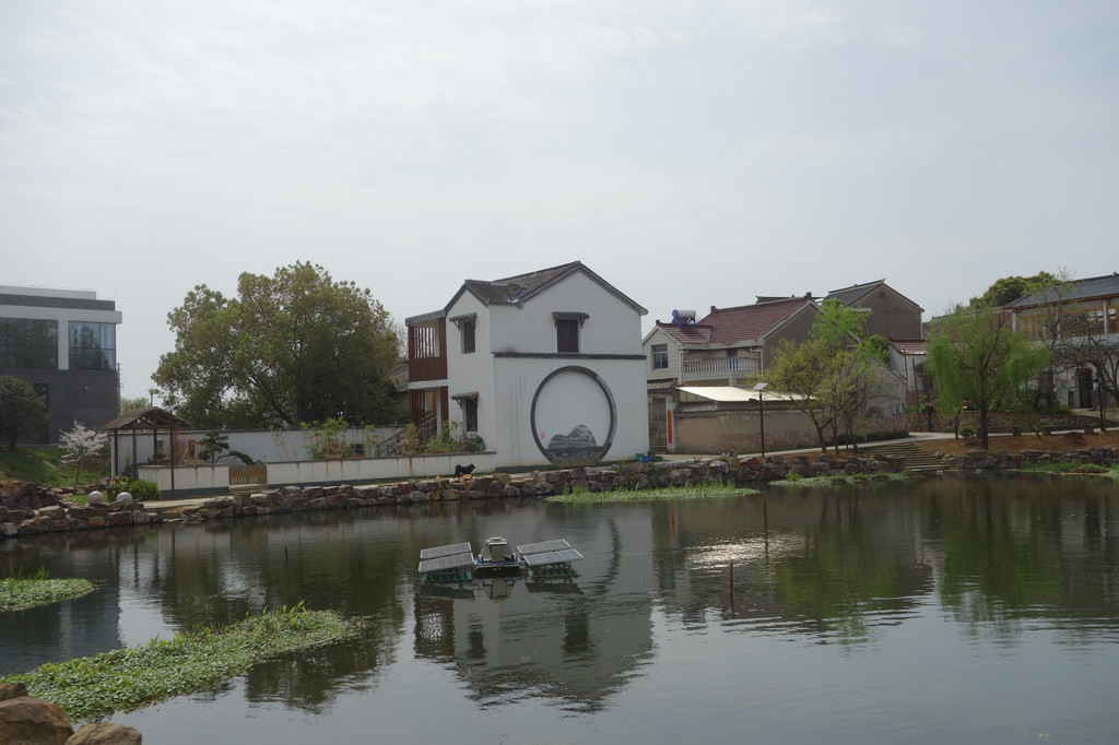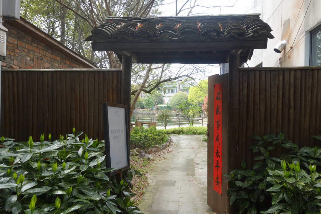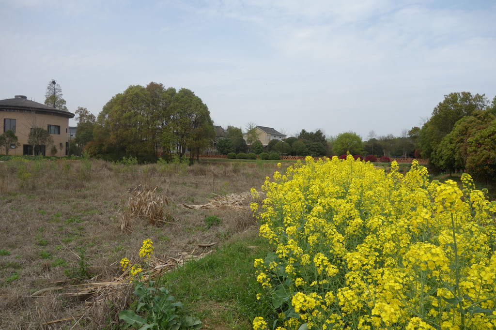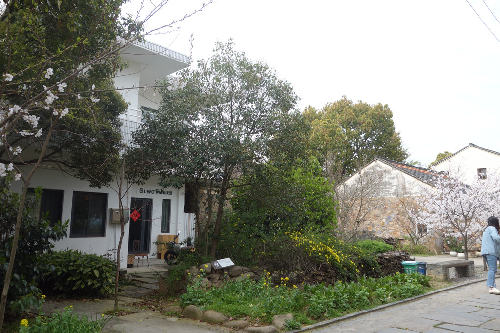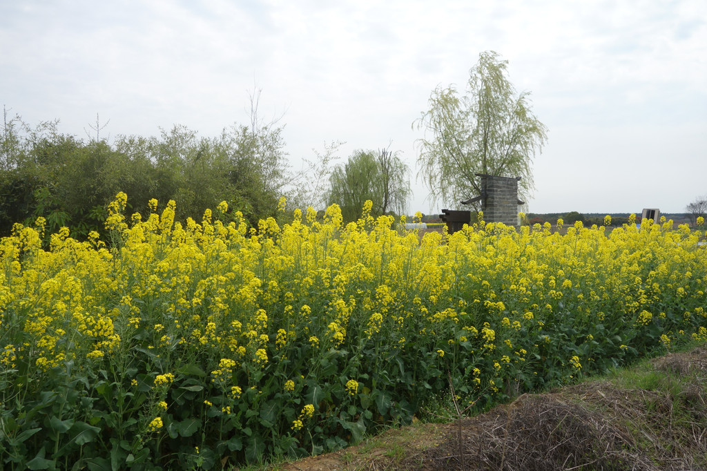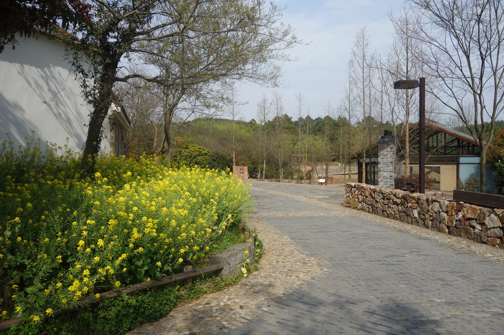 这座古朴的村落,处处充满了田园气息。白色的屋舍,斑驳的木门,一对红色的对联,屋前的金黄的油菜花,有一股江南的味道。