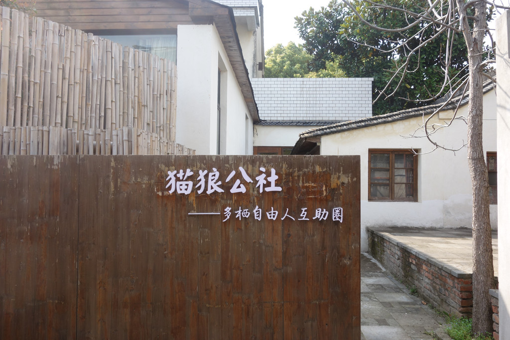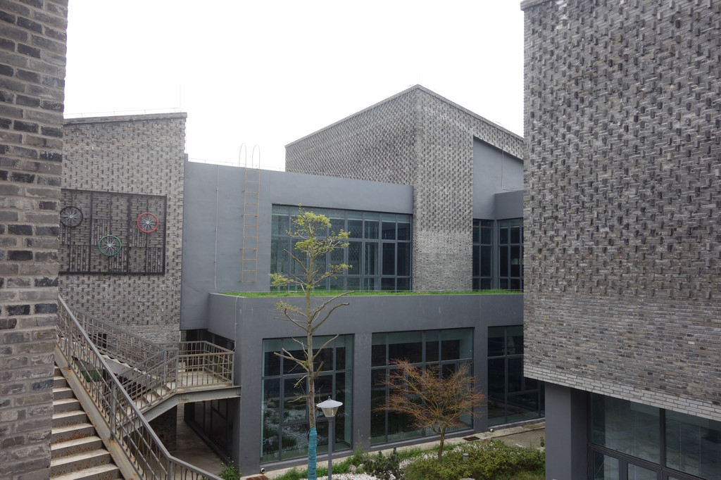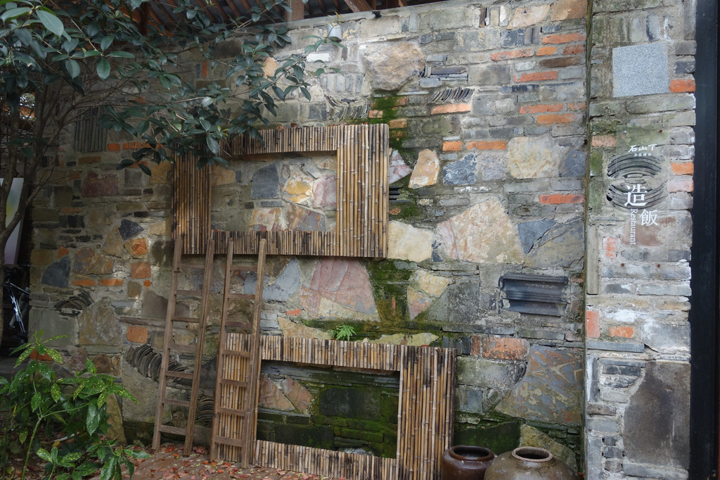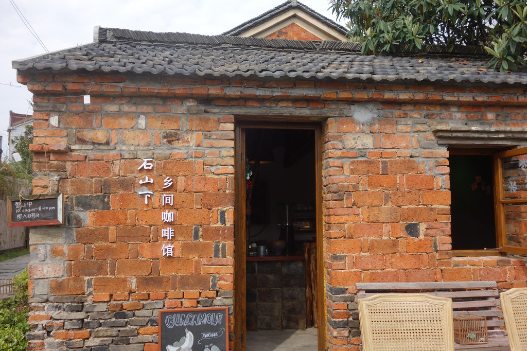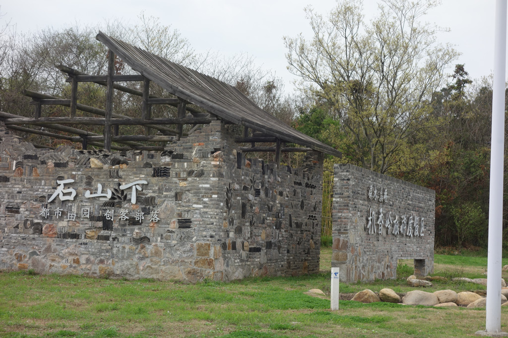 在省道与县道的交汇处就有这样标志性的建筑——石山下,都市田园,创客部落。各种深浅不一的灰砖垒砌,砖木结构,原生态的质朴一览无遗。