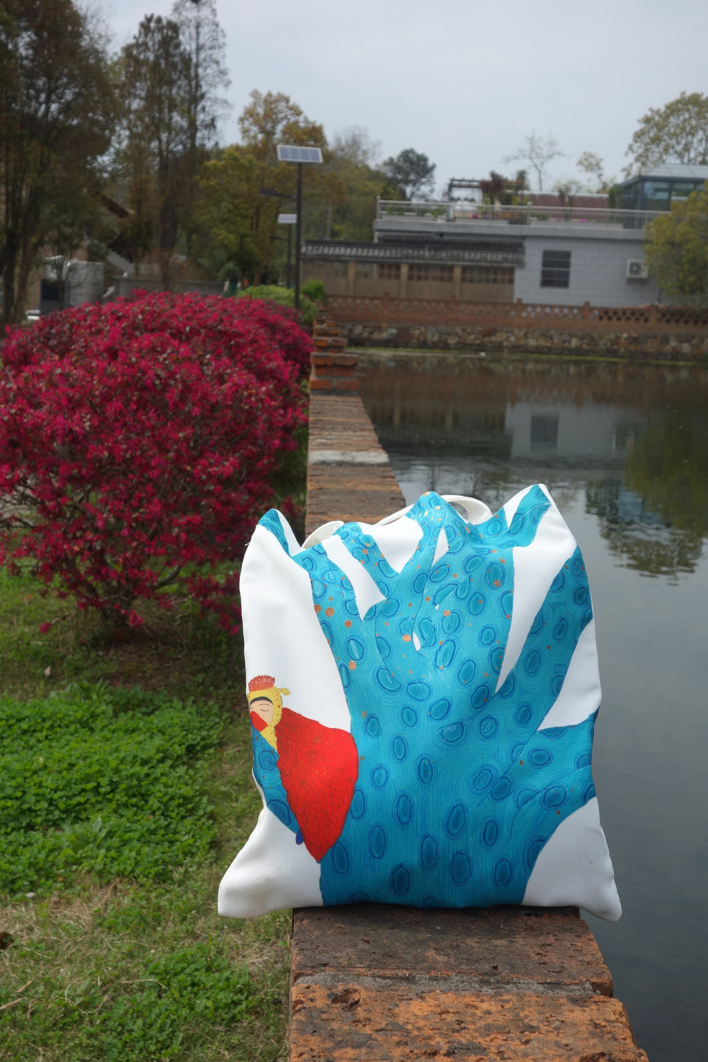 红砖砌成的低矮的围墙将池塘环抱。给我的“布达”包包来张留念。