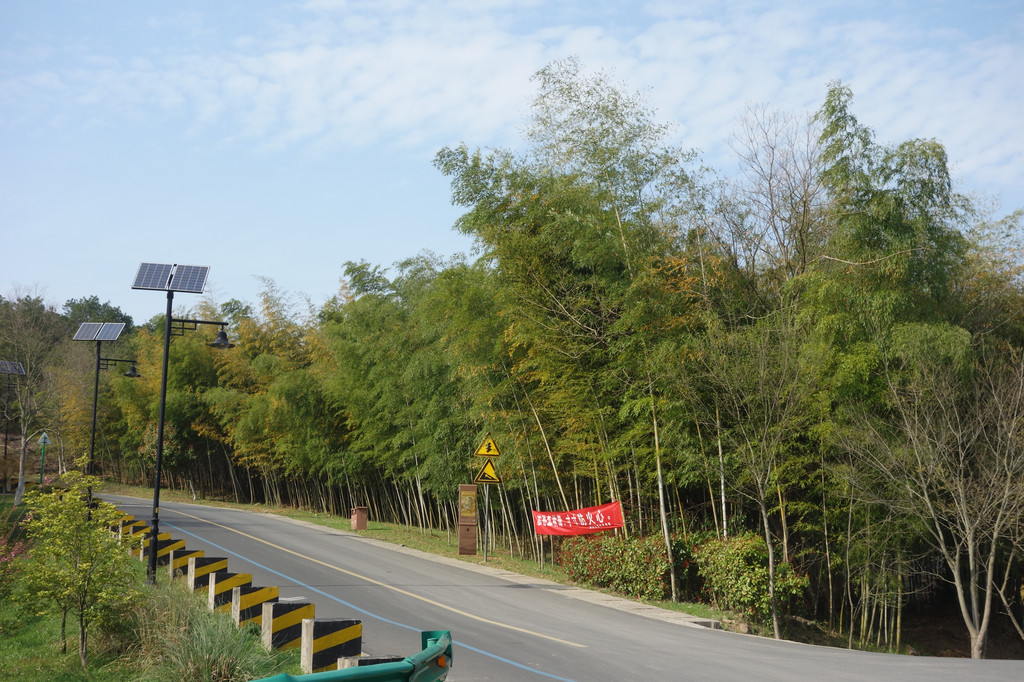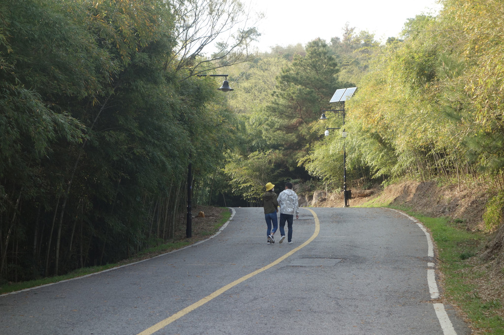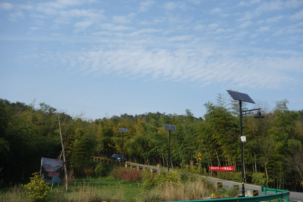 看天空,蓝天上白云翻滚,风一路山间竹林,树叶的索索声好似海浪的翻腾。