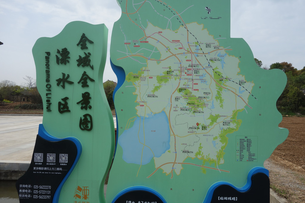 溧水区的全景图。溧水区是百里秦淮河的发源地。从图中看,这里拥有水乡风韵、田园风光、山地风貌的特点。林地,耕地,森林,这么多的植被构成了优良的空气资源素有"天然氧吧"之称。丘陵,湖泊,河流,这么多的地形地貌,加上溧水区内文化古迹众多,形成了现在溧水新十景的旅游资源。