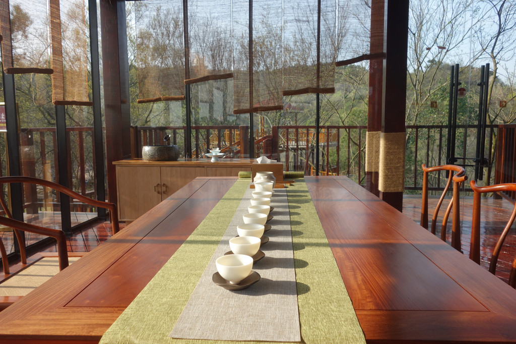 木框架,玻璃落地大窗的临水屋是一个集咖啡屋,茶社,书屋于一体的公共休闲区。休闲区以木制结构为主,充满了清新田园气息。原木色的柱子与木制靠椅相得益彰,显得简约而又古朴。这里有很多的座椅供客人休息。长条桌供朋友小聚,临窗的小方桌供情侣窃窃私语.......在装修上,古朴与现代混搭,无论是桌椅、灯饰、还是地板,书架,吧台,抑或是一面墙,都很有特色,处处体现了未见山的体验与意境。
