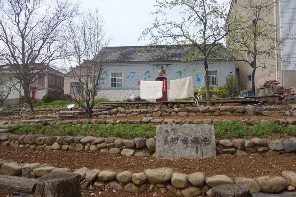 村中很多的房屋被年轻人租下,加以创新,利用。即保留了原貌,又加以雕琢,建成一座座别有洞天的乡居酒店,艺术工作室,民宿。这个用石头围合的一层层梯田之上的蓝色音符小屋就是一家乡村啤酒吧。但现在也是大门紧闭的状态。