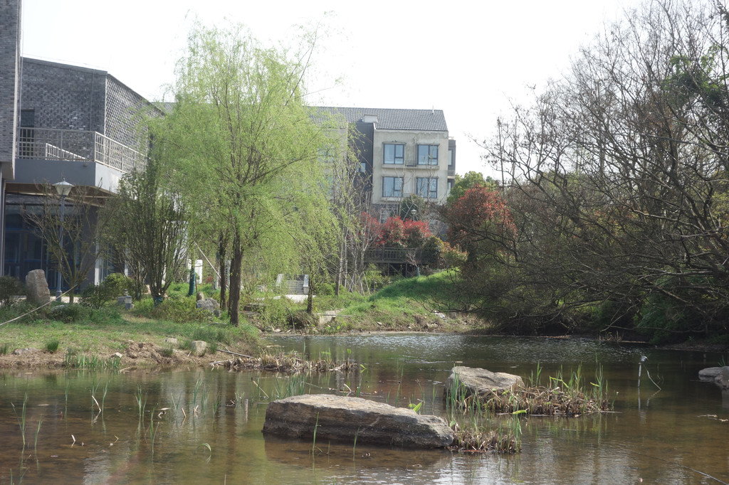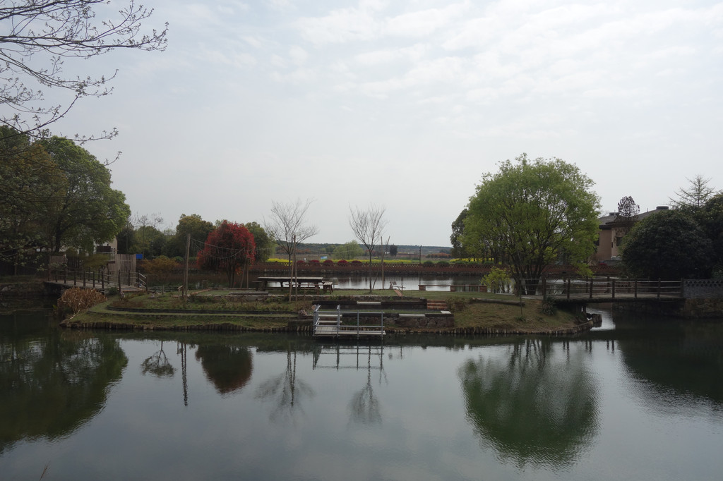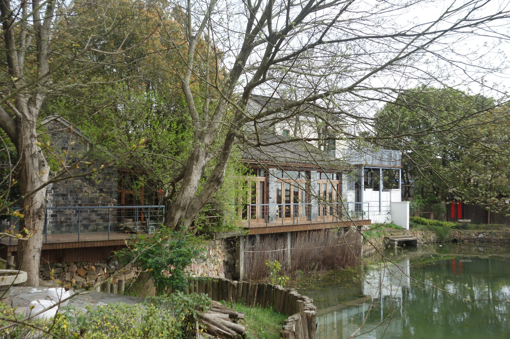 池塘那边就是大名鼎鼎的未见山乡居酒店了。从这边是无法进入的,只能隔着池塘欣赏远景。