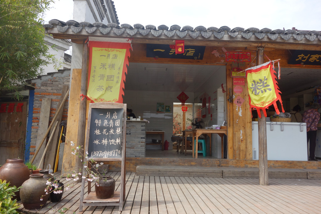 一片店-刘家铺子,是一家当地有名的米糕店。我们到达的时候米糕已经被一个乡村游的旅游团订购了,我们买了他家的青团,全当午饭了。因为疫情的影响,我们还没有敢在农家乐里吃堂食,出来玩都是自带干粮,再买点当地的小食果腹。