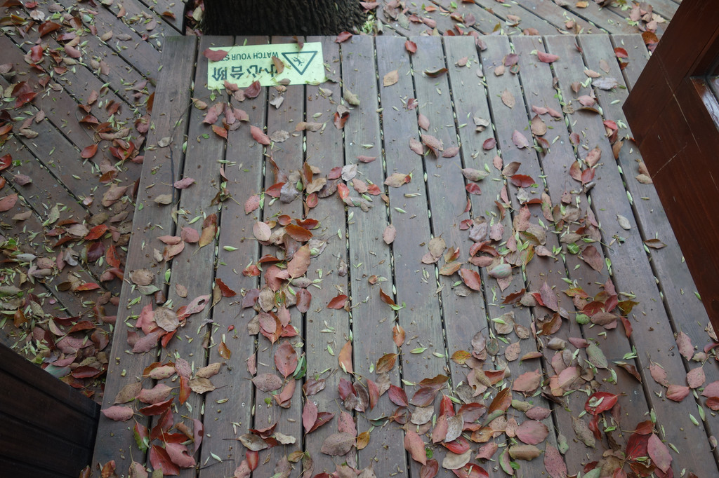 推开木门,踩着木质地板上的一地落叶走进小院。