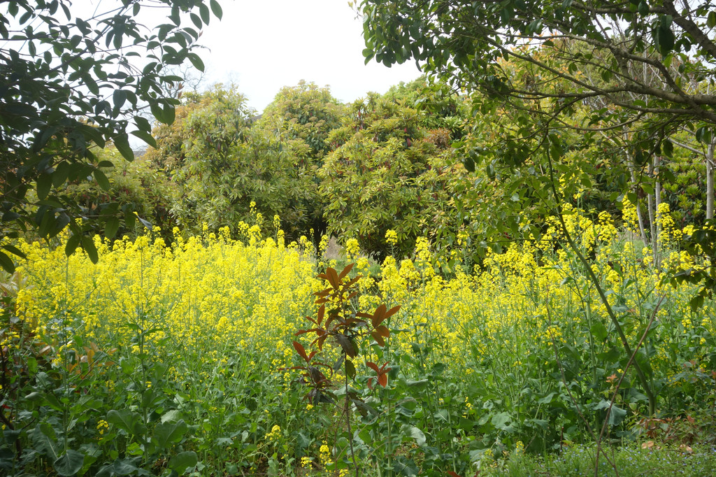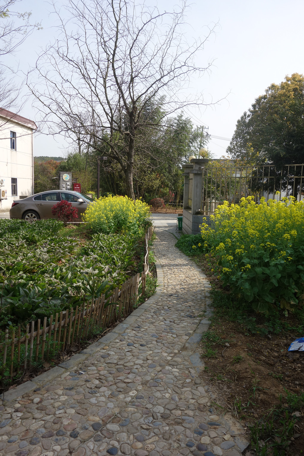 鹅卵石铺就的小路就如一条花径穿过油菜花