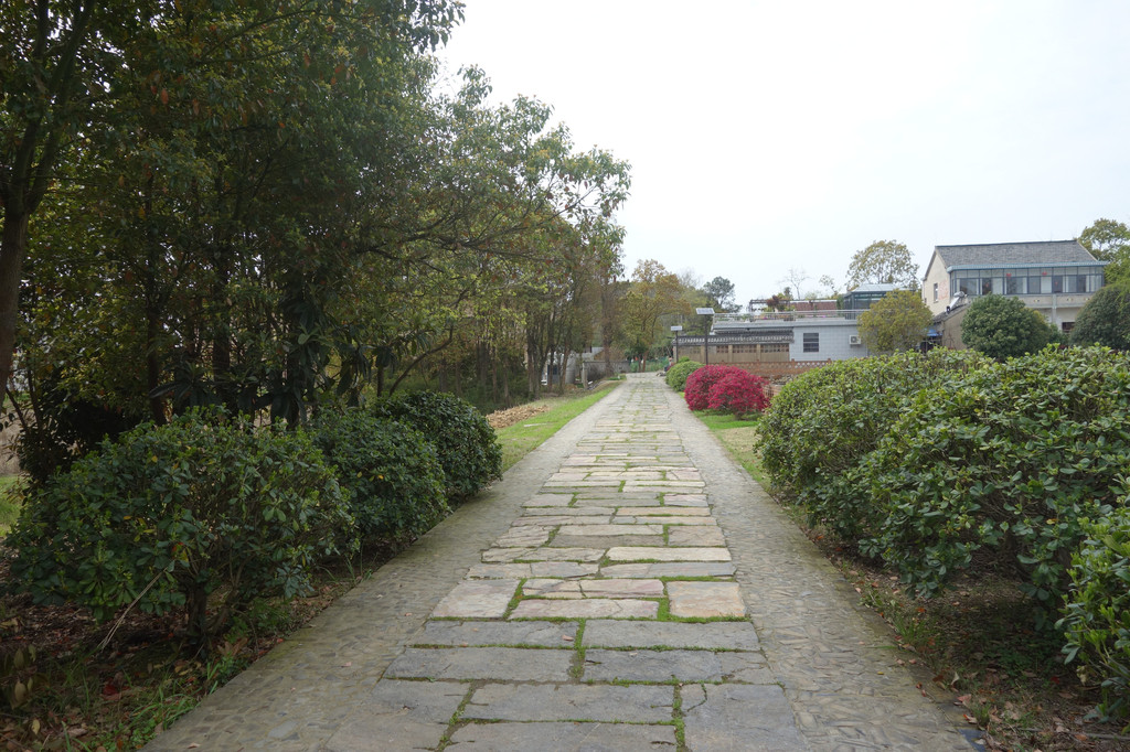 沿着一块块石板路往村中屋舍聚集地而行。