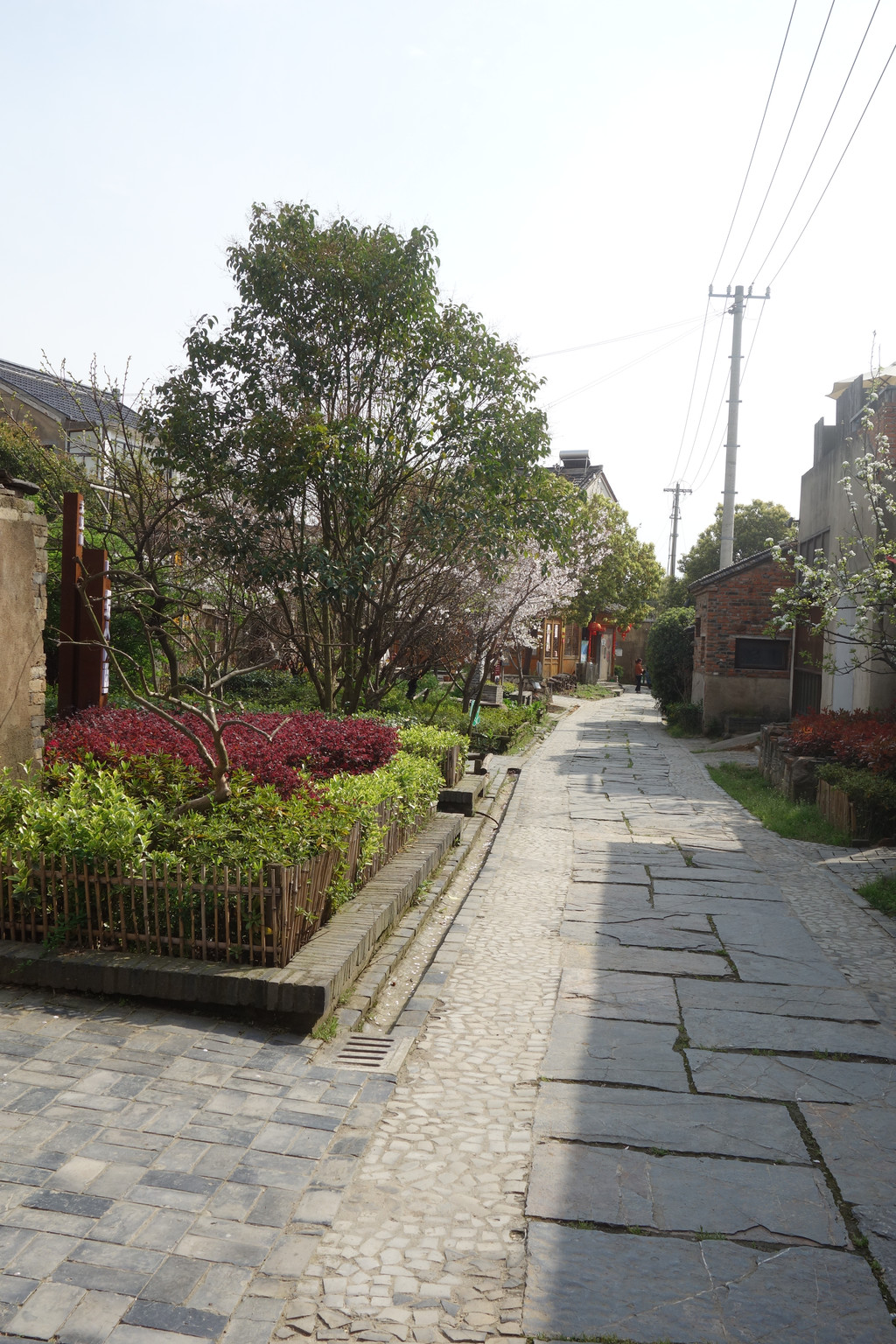 道路不宽但整洁,屋舍不高但错落有致。