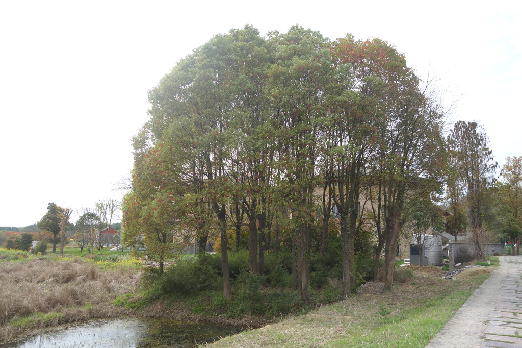 几株高大的树木围合成一大株“绣球”状的小树林。