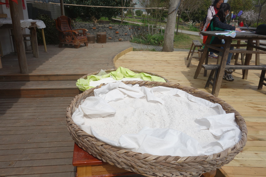 正在晾晒中的用来做米糕的米粉。