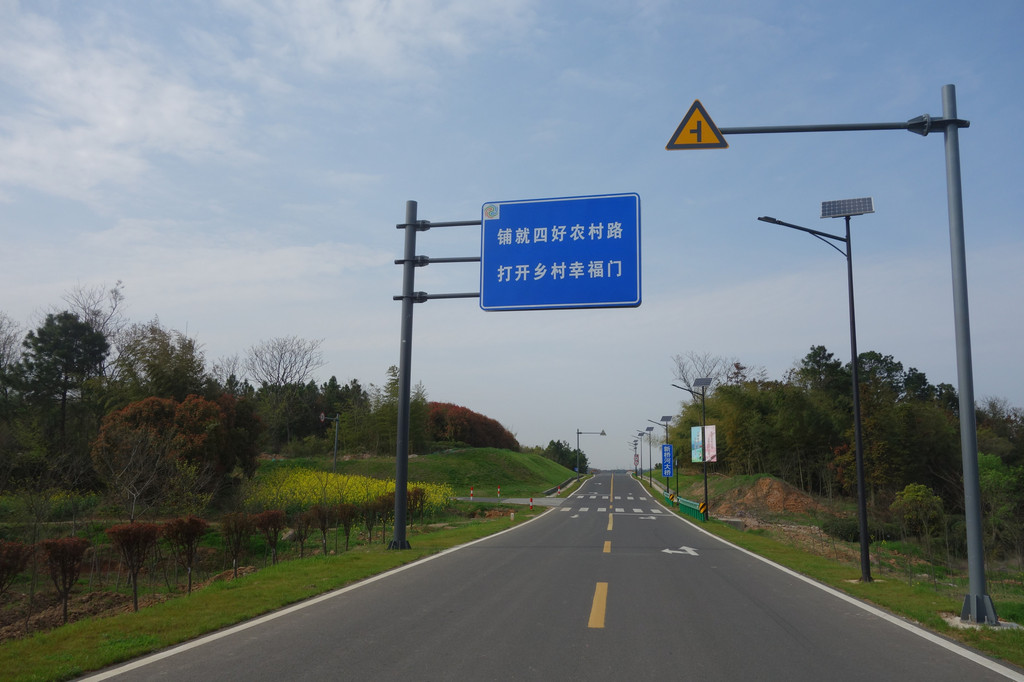 美丽的村道连接到芮家线。芮家线一路与延绵的丘陵,油菜花相伴,美美哒。