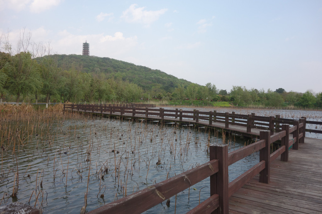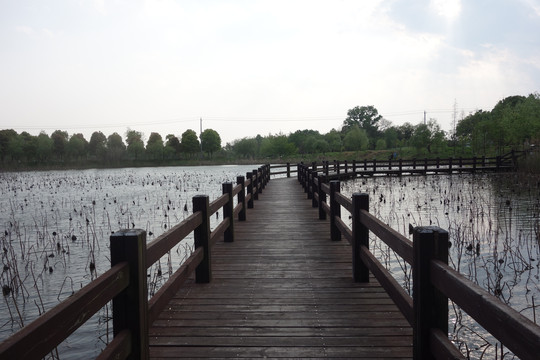 水库下是一片沼泽,沼泽地里一个木制的长长连桥。