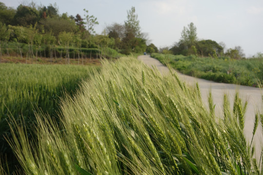 田间有窄小的小径,顺着小径亲近田间。两旁绿油油的色彩瞬间治愈了眼睛,郁郁葱葱。这个时节有阳光但不燥热,一阵风吹来,身上凉凉的,瞬间格外清爽!