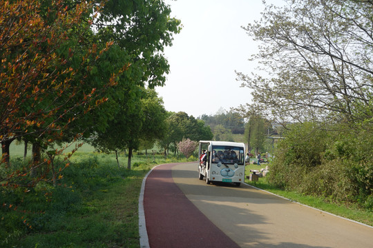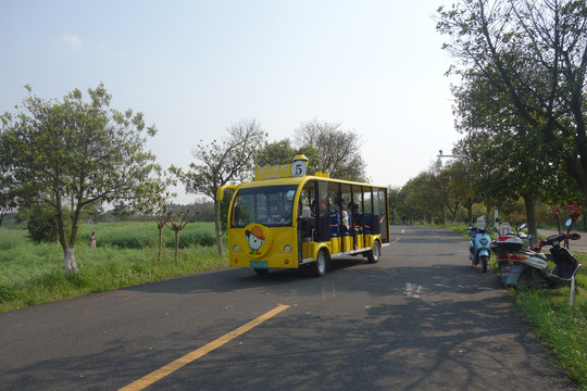 慢城真的很大,光靠两条腿实在是吃力的很,好在景区内有旅游巴士乘坐。在一片绿色中行驶的黄色,白色的小巴本身就是一道亮丽的风景线。