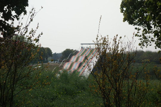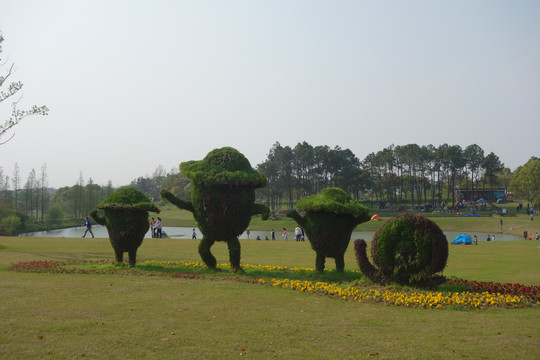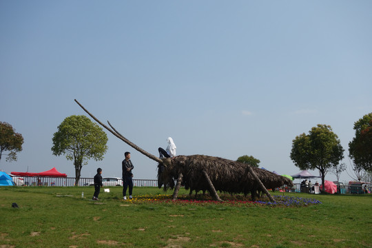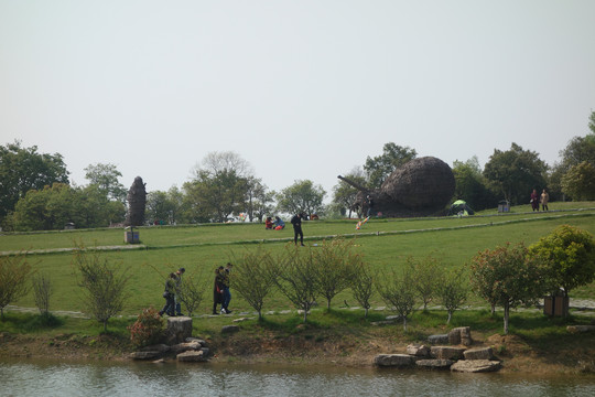 面积开阔的吕家大草坪上绿草茵茵。草坪上有巨大的蜗牛草塑,象征着慢城的“慢主题”旋律。
