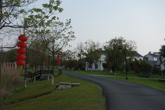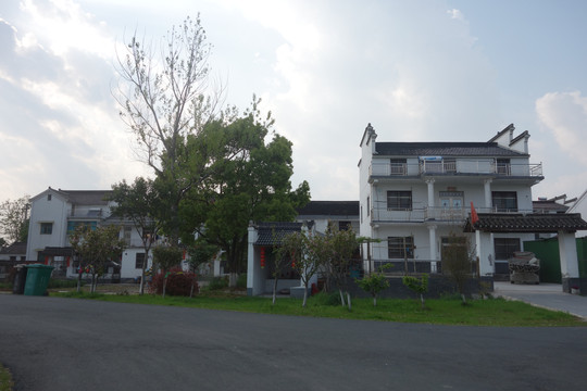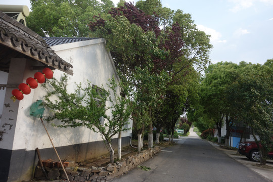 行驶在村道中,一切都是干净整齐的模样。徽派建筑风格的村舍与绿色相应,简单生趣。