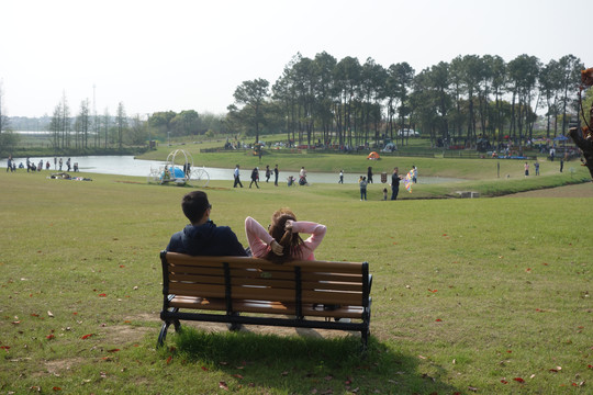 大草坪上是欢乐的人群,疫情好转,来到户外的人越来越多。