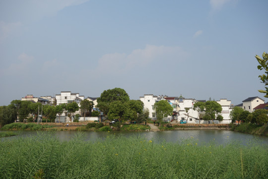 从村中方向看到的场景是如此的清亮。近处的民居,池塘,远处的柳树,油菜地、远近相衬,织就一卷锦绣江南如画图,赏心悦目,叫人陶醉。