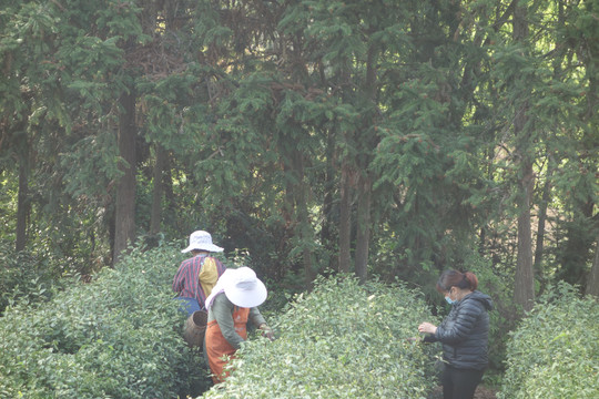 道路左侧山岗下是一小块茶园。这个时节是不是采摘新茶的时机?