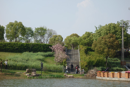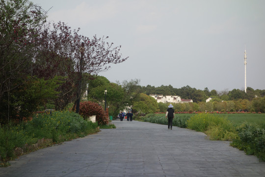 水域那一侧是桃花扇广场。一年一度的国际慢城金花旅游节的开幕式就在桃花扇广场举办。