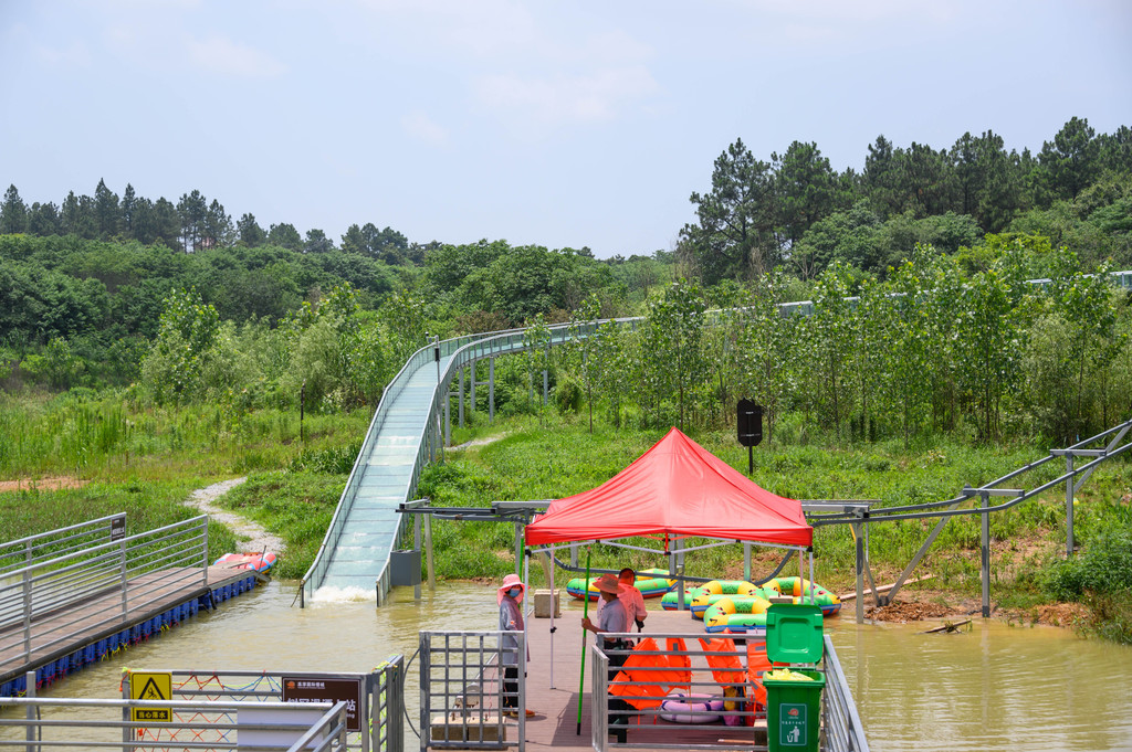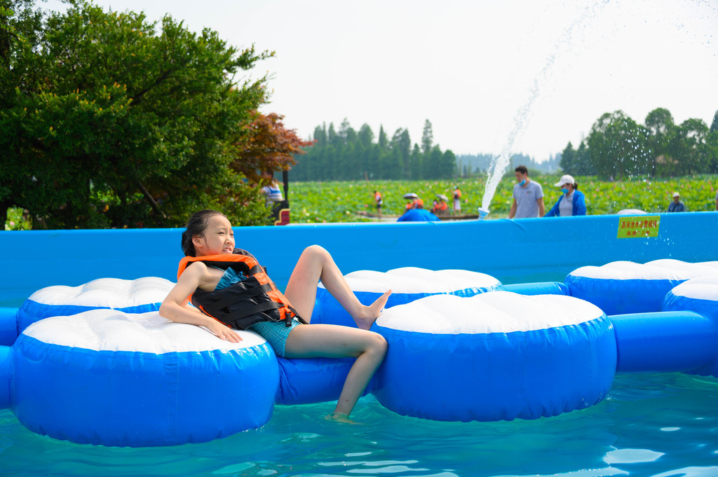 在百荷花园内还有一个水上大冲关,长50米的水上滑梯并配备多种造型的悬浮垫、各类造型游泳圈等,孩子们在里面玩的不亦乐乎。一到夏天,孩子最喜欢的就是玩水,赏玩荷花当然要在水上大冲关畅玩一把了。