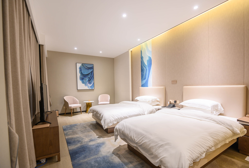 晚上我们入住的是六洲荟城市精品酒店,这是一家新开的时尚特色酒店。房间的面积很大,还有衣帽间,作为精品酒店,很受女士们的欢迎。橱柜里的吹风机是小米的,静音效果很好。