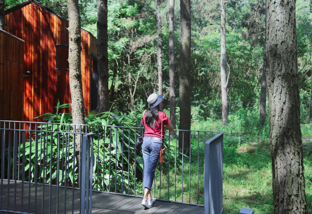 假如你想回归大自然,做森林里的仙子,那么就去枕松度假酒店吧。这里是北欧野奢风森林木屋,南京最具特色的森林木屋。林中有屋, 屋中有树,是由加拿大木业设计建造。酒店分别有木,林和森三种房型。