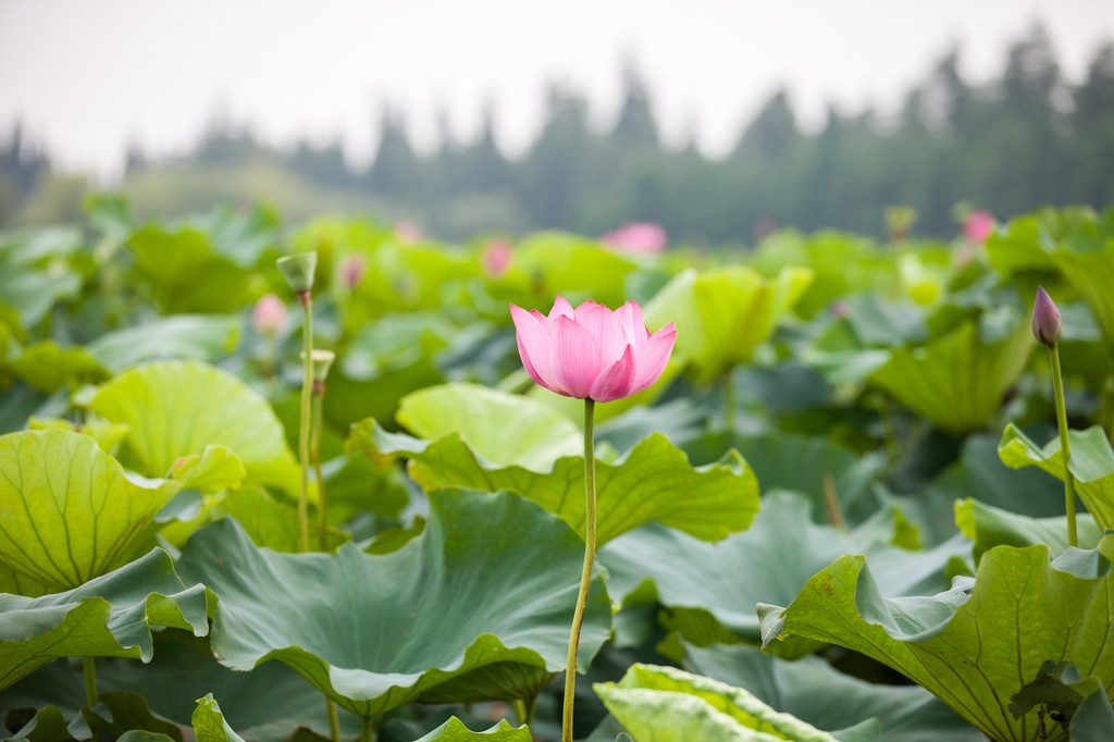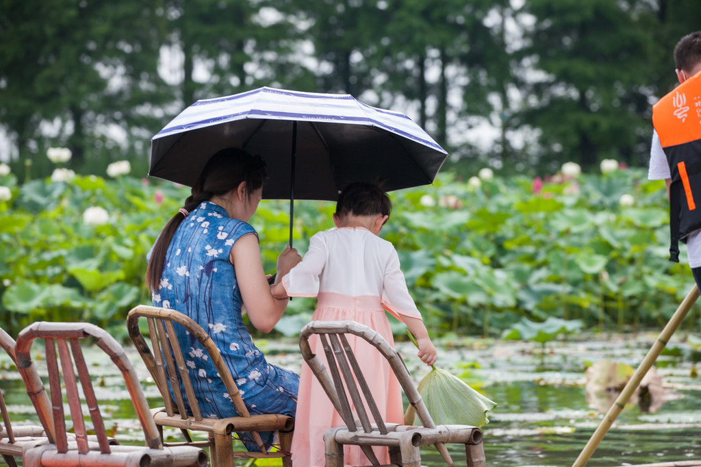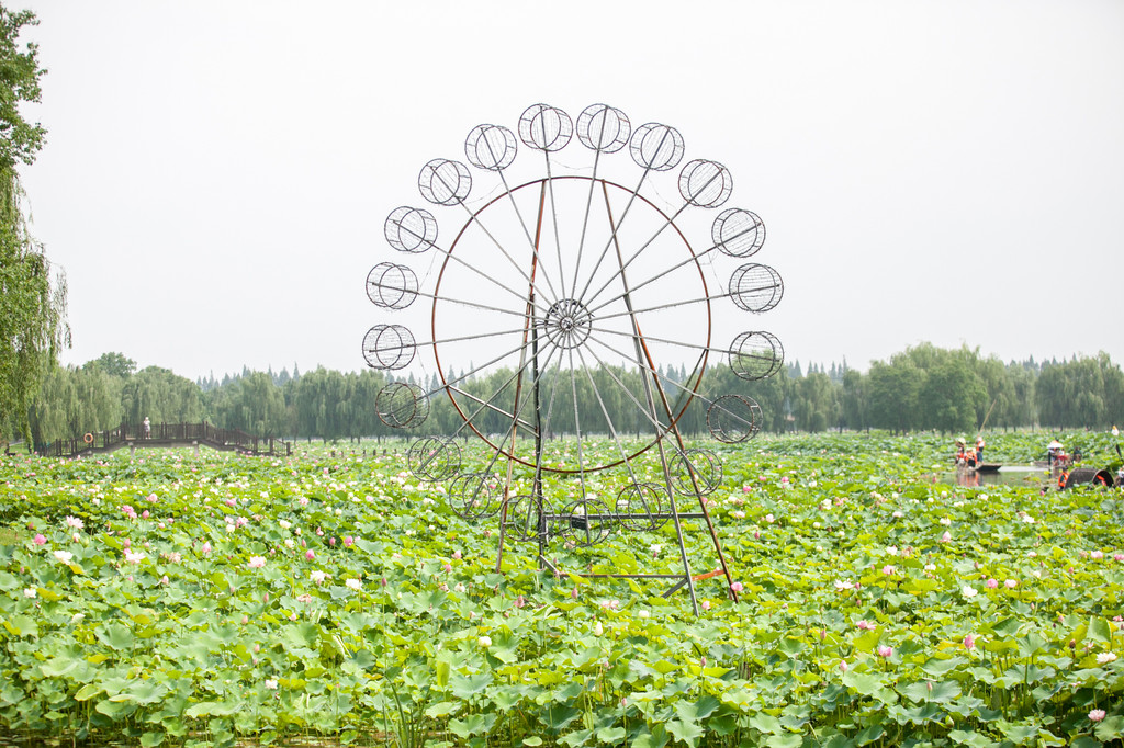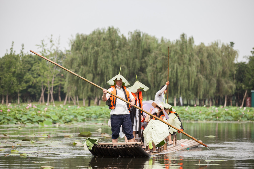 百荷园里的荷花,可不止一种,像罕见昂贵的“剑舞莲花”、“漂亮女孩”,这里也都有。数千亩的荷花池中,有蜿蜒曲折的木栈道、古色古香的小木桥。游客们还可以买船票,体验从荷花丛中穿过的乐趣。有竹筏、乌篷船、皮划艇等船只可选,划着小船,穿行在千亩荷池之中,别提多惬意了。