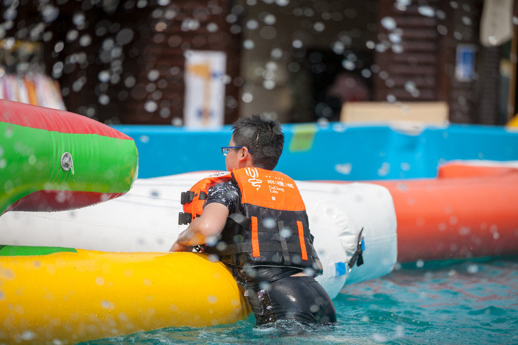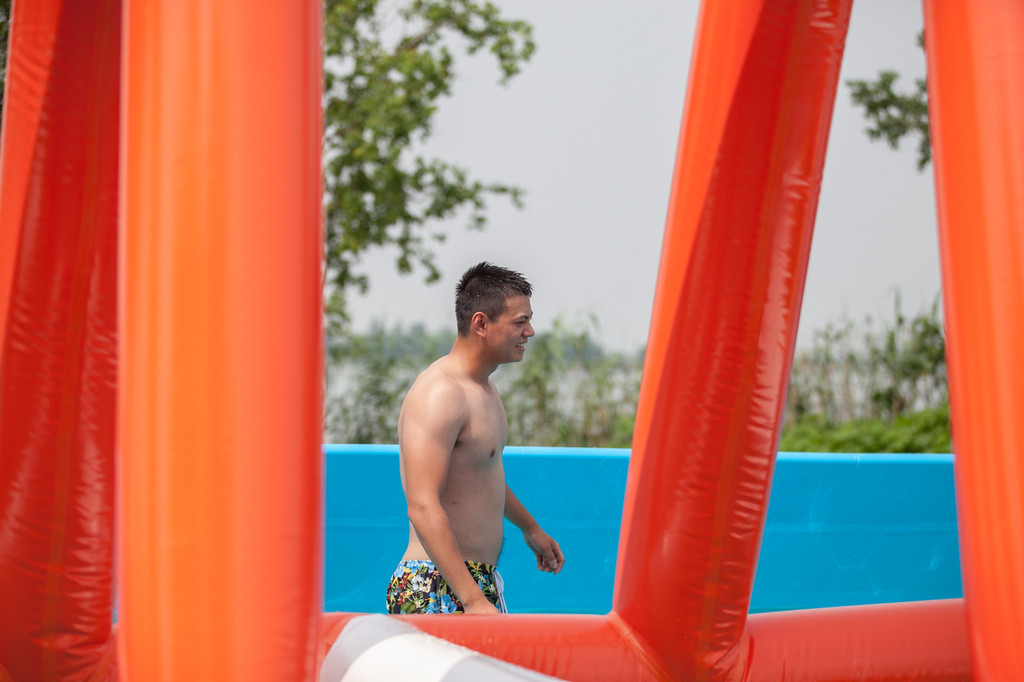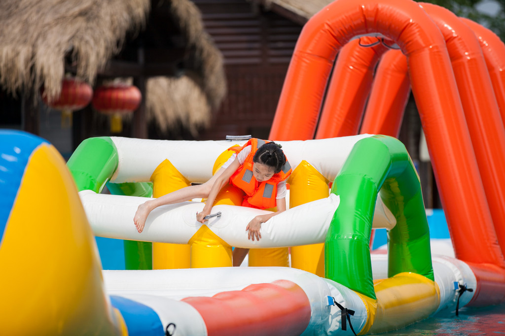 荷花池畔,还有小朋友们最喜爱的水上游玩项目。偌大的水上城堡、紧张刺激的闯关游戏、打水仗,可以玩一整天。你不必过于担心小朋友们的安全,这里有安全员全陪看护。夏日玩水是多么开心的一件事,小朋友们洋溢的笑容多么灿烂。