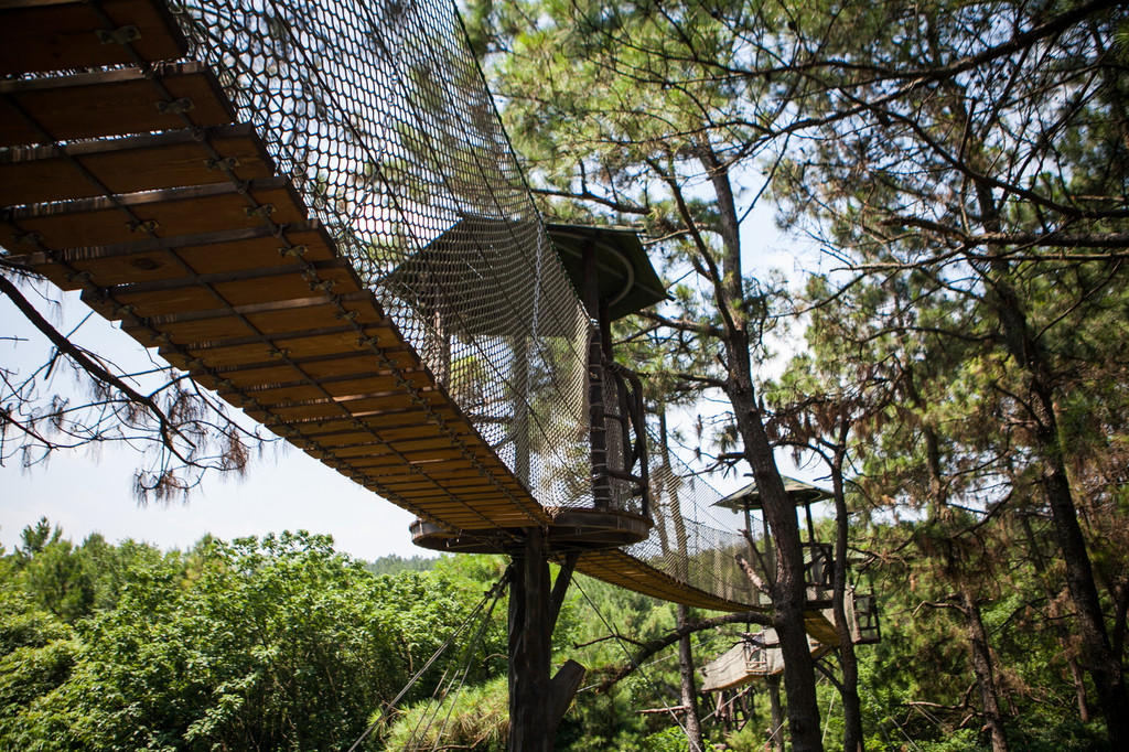 树冠滑漂,夏日绝配!将近长500米,落差18米,而且滑道是透明玻璃制成。途中能体验到凌空而下的速度感,落水时还能体验夏日清凉,深受欢迎。
