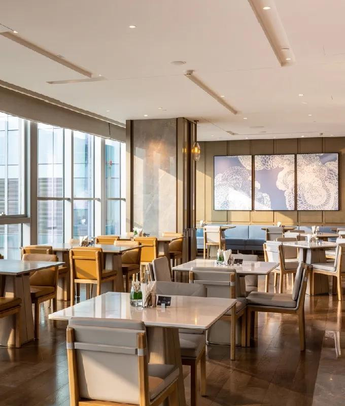 行政酒廊或许是酒店内最安静的去处,充满艺术气息的装饰氛围令人不自觉地轻声细语起来。行政客房及套房的客人可以在此消磨一整天的时光。全日提供免费的咖啡茶水和软饮小点,只要我在窗边落座,温婉的酒廊员工就会前来询问是否需要一杯咖啡,就算是在这里看看景发发呆也觉得非常惬意。