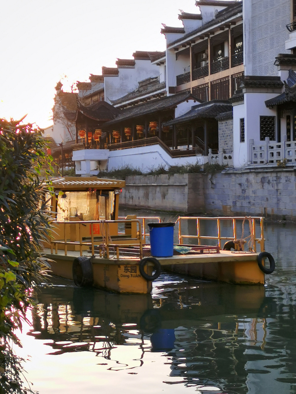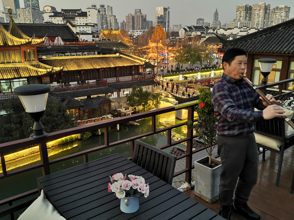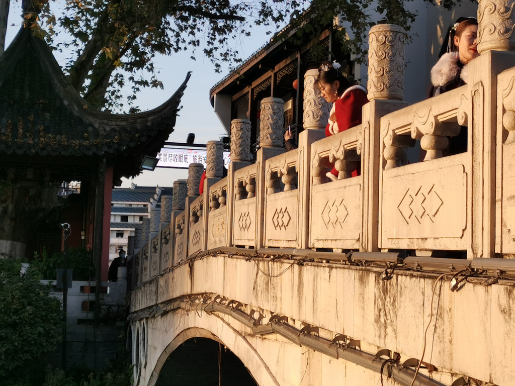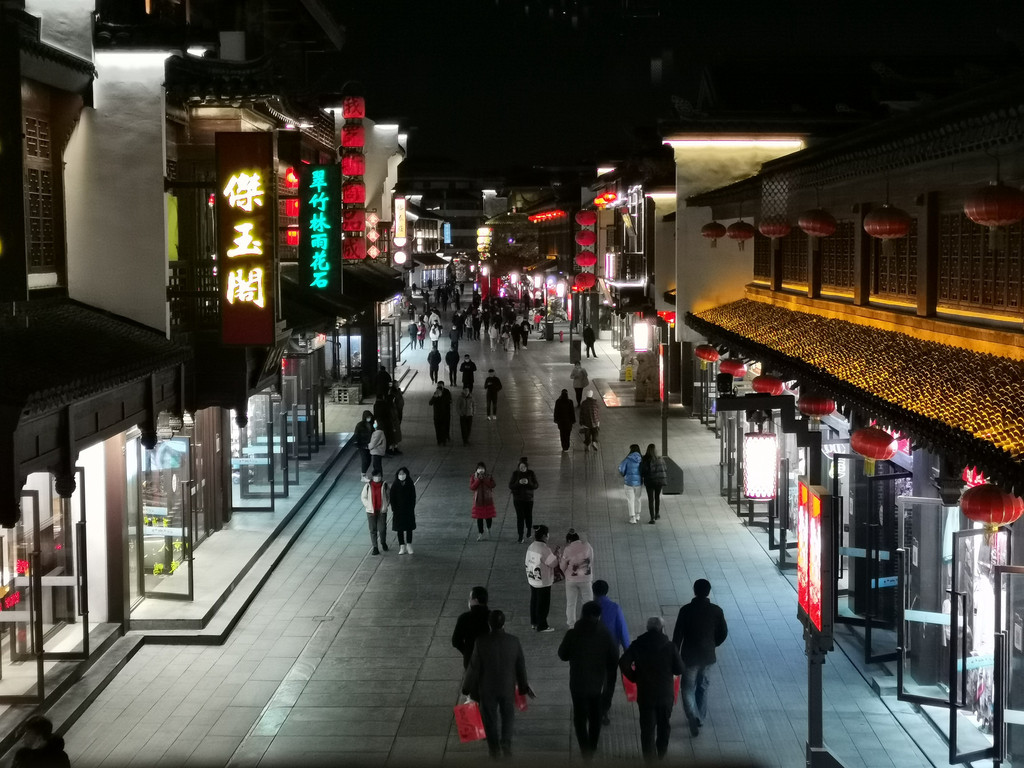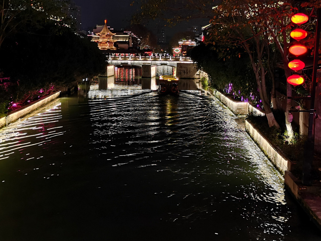 秦淮河在夫子庙这一段,可是最引人注目,也最是显尽风光。这一侧广场,古街、牌坊。在另一侧是巨大九龙照壁,还有那醒目的秦淮人家。都是满满的古风会把人带入曾经的古韵之中。秦淮河不是很宽,缓缓流动。在独特的拱桥之上,是最佳的视角,人们总是在此地留影观赏。在霞光中看斗角飞檐;赏画船慢度。在夜色中观红灯亮起;流光溢彩。水光波动、舟船穿梭。如乐声扬起、商女送歌,那意境会醉死人。我终于找到了一家临河的客栈。可以凭栏看灯枕河入梦,还可以对河弄箫故作风雅。沐朝晖夕阴;伴夜色灯火。在夫子庙不仅尝遍了金陵的风味小吃,也是过了一把风雅之赢。虽然在寒冬之际游玩,但是仍然如沐春风。真的很爽!