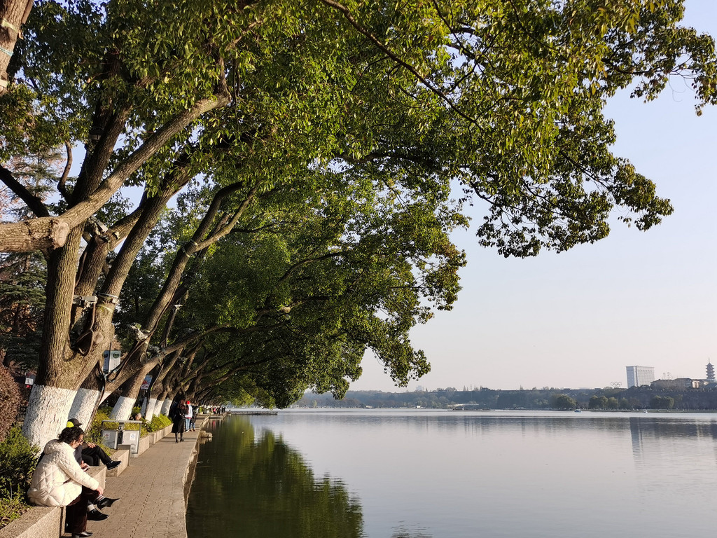 玄武湖是南京市内的大湖。东枕紫金山,西靠明城墙。呈菱形,有5.13万平方公里。是江南最大的城内公园。堤桥相映,湖面宽阔,乔树成影。是个休闲赏景的好去处。羡老叟座椅赏景;看情侣挽手漫步;听儿童游乐戏闹;眺远方湖上泛舟。感觉一片美好。