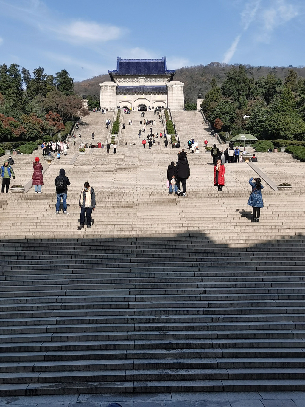 孙中山先生是中国近代史上最伟大,最受敬仰的人物。他领导了辛亥革命。登高一呼推翻了腐朽的满清王朝,建立了共和。他倡导三民主义的社会追求。中山陵是他的陵寝,在紫金山南麓。从博爱坊开始,一条直轴线。经墓道、陵门、石阶、碑亭、祭堂和墓室。庄严简朴,大气磅礴。它与明孝陵还有音乐台、藏经楼、流徽榭包括海地世界等组成偌大的钟山风景区。如果在风和日丽、春光秋色中。这里的风景真是无限。明孝陵也在紫金山,他是明太祖朱元璋与马皇后的陵墓。是明清皇家第一陵。也是层层而上,气宇轩昂,尽显了皇家的气势。当然现在也是有了沧桑之感,了无生气。