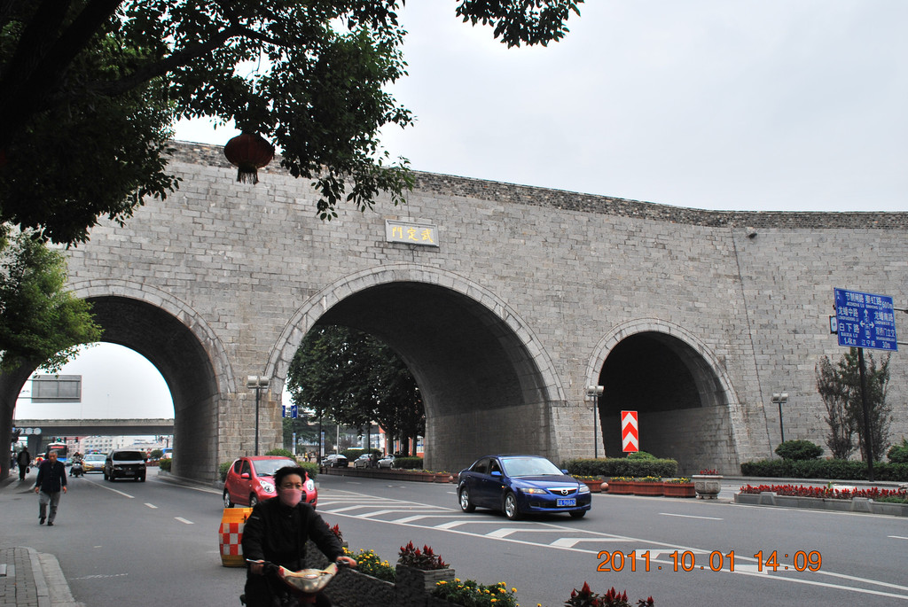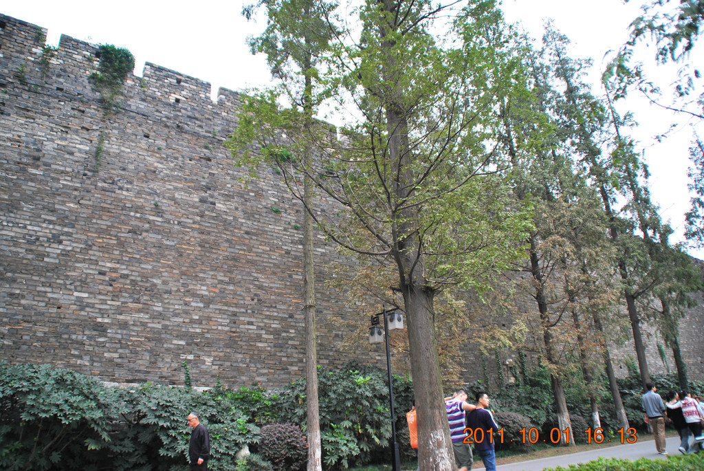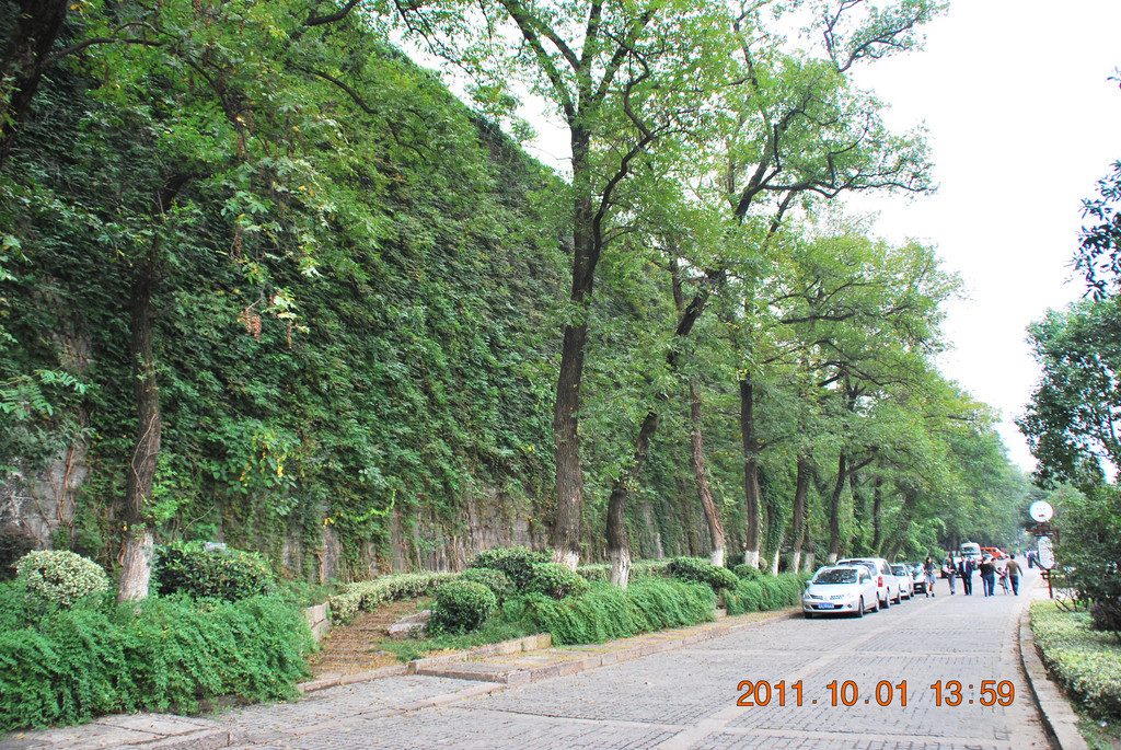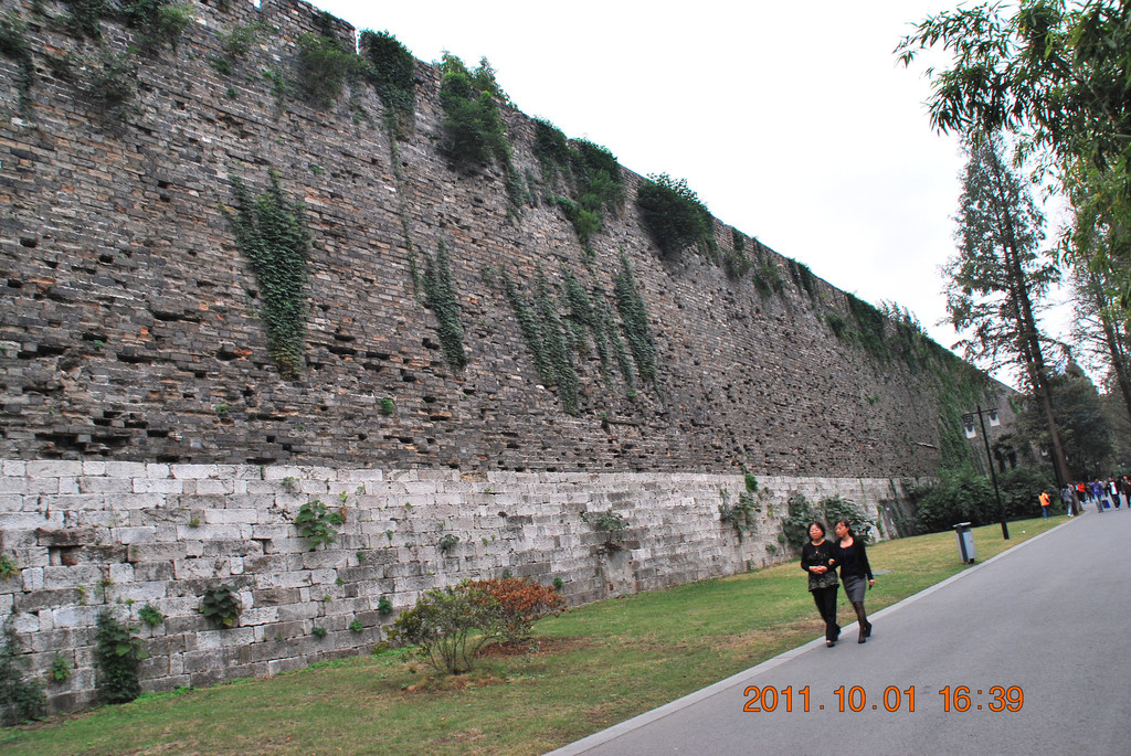 出公园门,走在古城墙下。