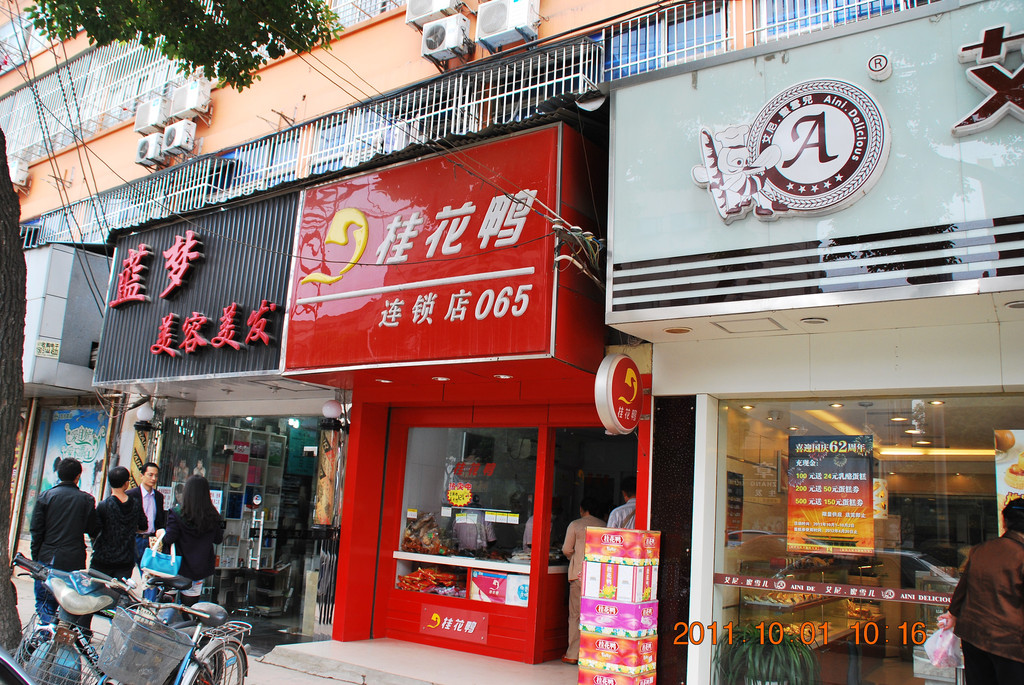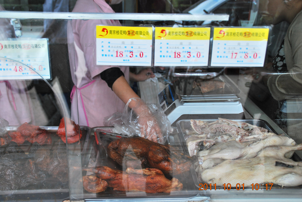 1日上午,我先买了南京特产盐水鸭。这是和燕路上的一家桂花鸭门店。南京盐水鸭最好吃的是桂花鸭集团生产的,该公司在市区有很多门店。其中,真空包装的味道一般,应该买现吃的熟食盐水鸭。