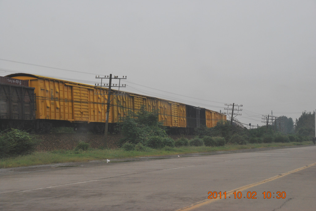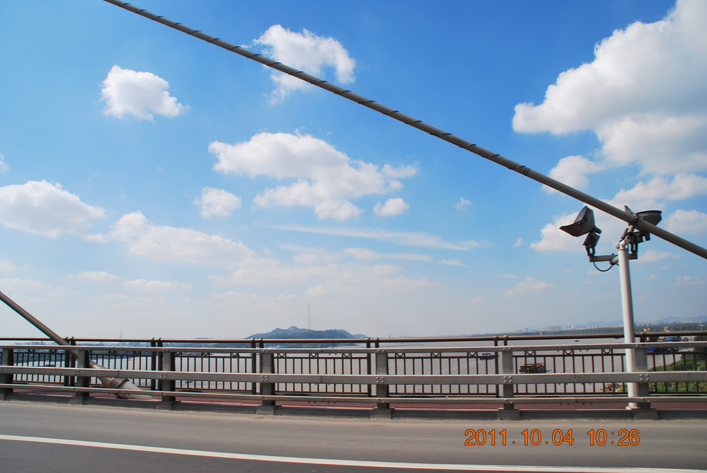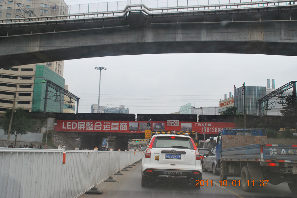 这张摄于中央北路上,前面是通往长江大桥的京沪铁路,上方是沪宁城际铁路。