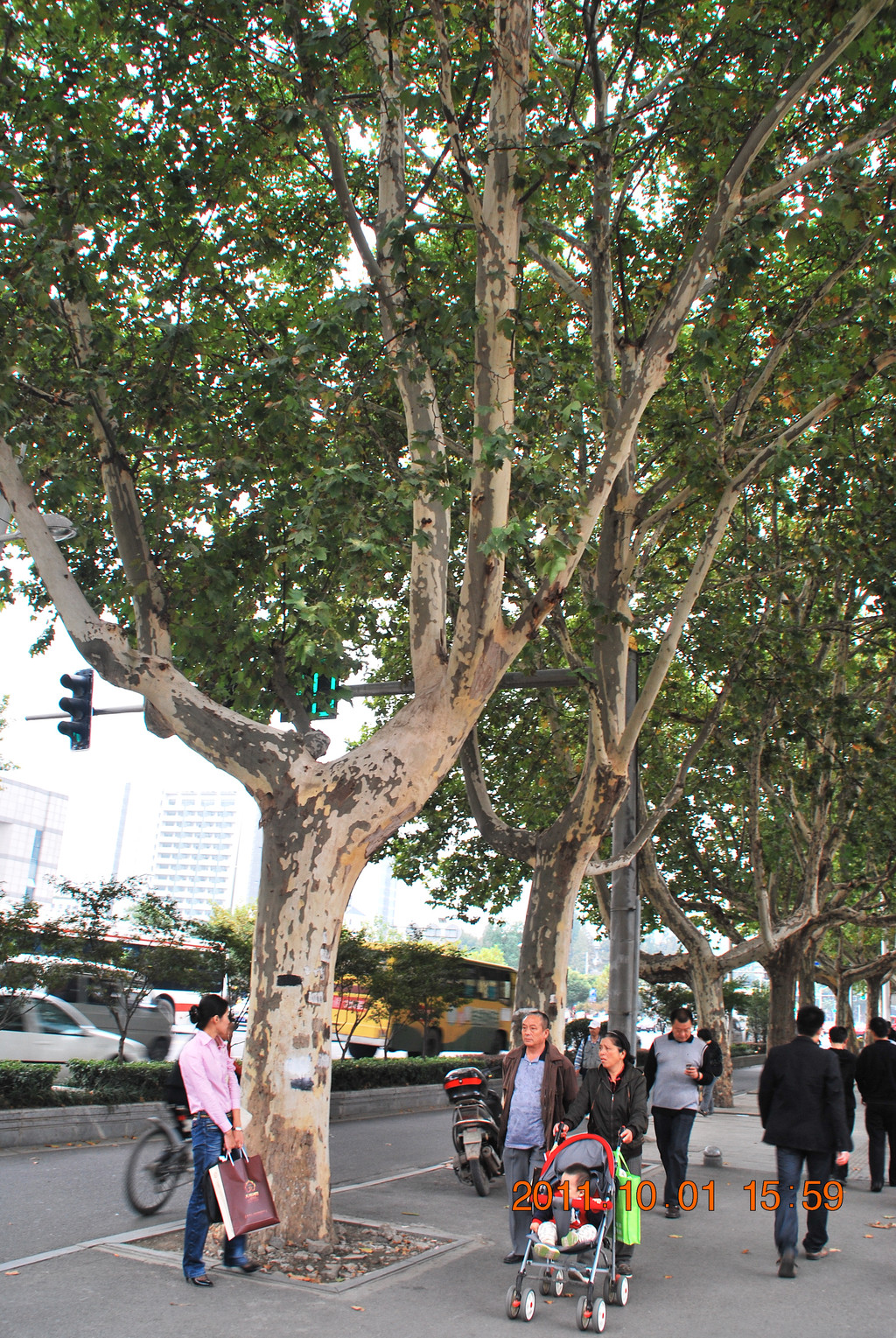 南京的梧桐树长得很特别。