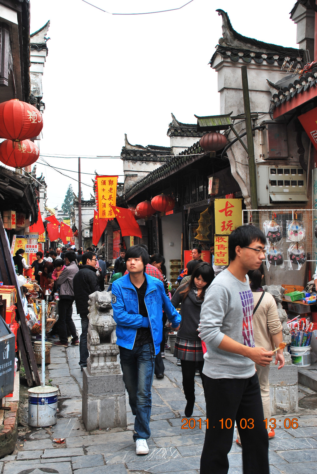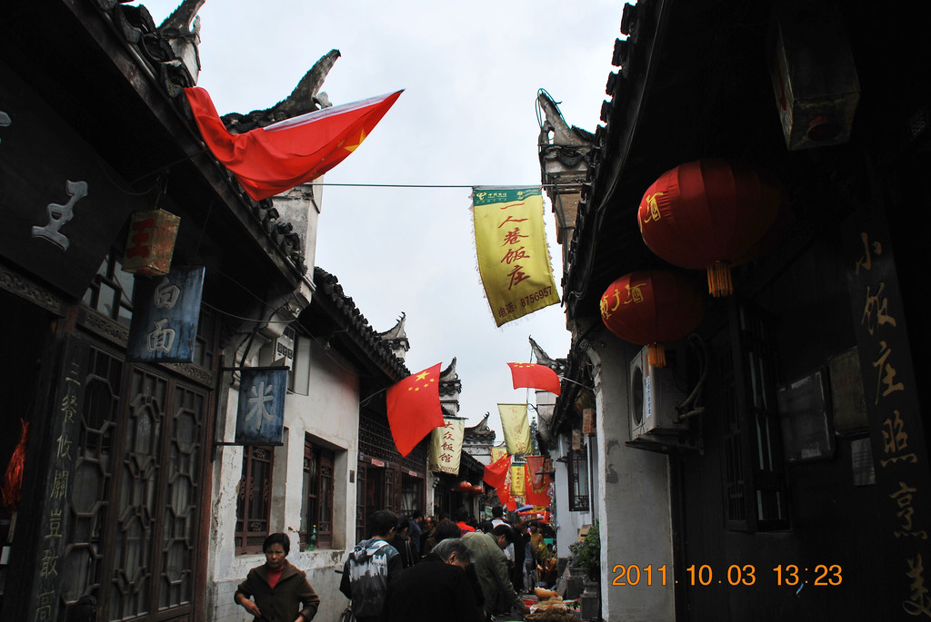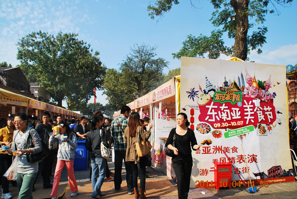 镇江市区的西津古渡,逛街免票,正在举行美食节活动。