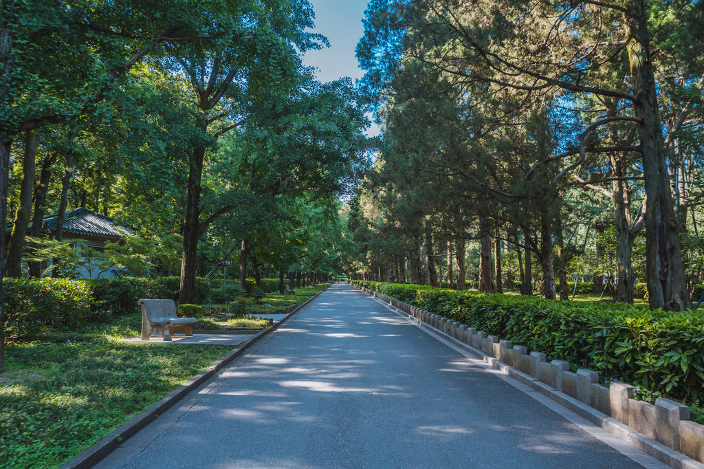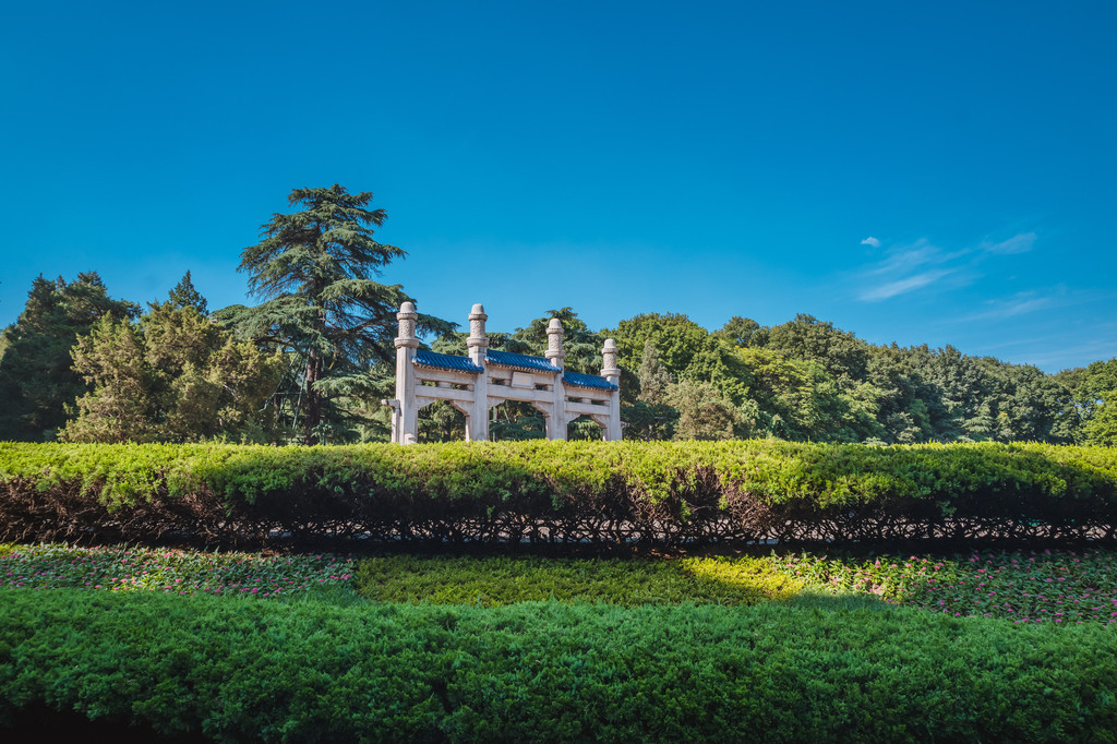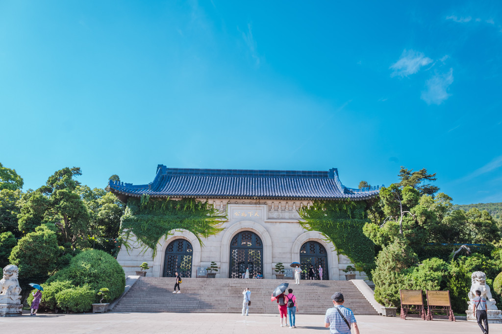 中山陵入口已经不太像一个纪念陵园了,这里绿荫环绕环境优美,更像一个市中心的休闲公园,即使闭馆的周一,还有许多人前来瞻仰,这里是中国近代伟大的民主革命先行者孙中山先生的陵寝及其附属纪念建筑群,陵寝面积8万余平方米,于1926年春动工,至1929年夏建成。陵墓建筑按南北向中轴线对称布置在中茅山南麓的缓坡上,从空中往下看,中山陵像一座平卧的“自由钟”,取“木铎警世”之意。