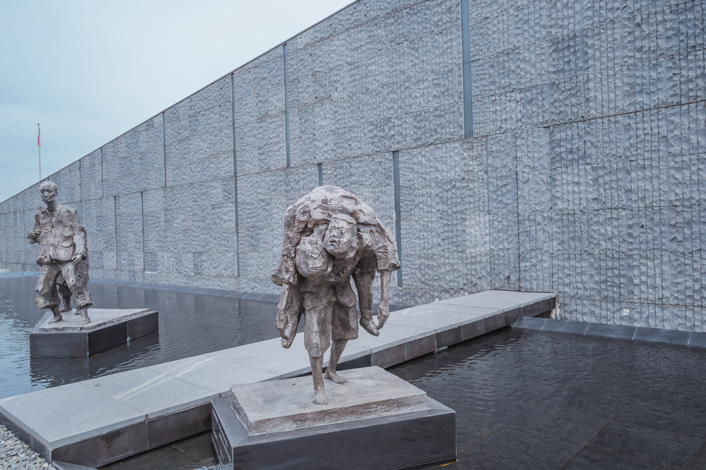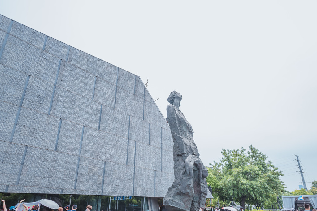 用一只白菊,寄托哀思,悼念同胞,在游览过程中,我第一次没有过多拍摄照片,每一幅场景都是令人压抑痛苦的事实,门口的雕像让人不忍细看,曾经的惨案提醒人们,不要忘记历史。