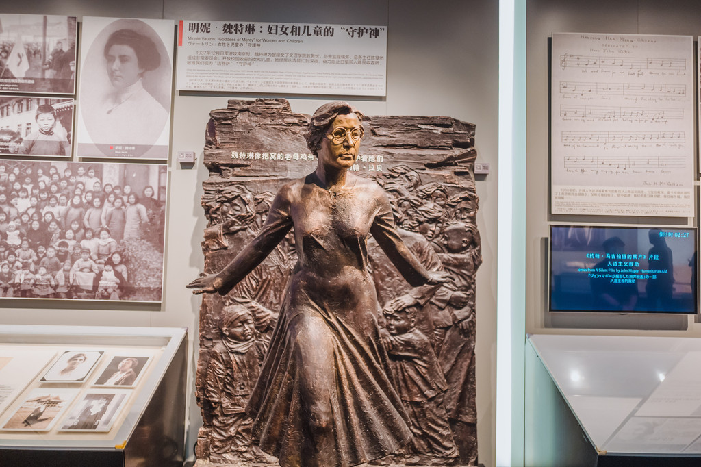 这里是每一个人都应该来参观的地方,重塑我们对历史,对战争,对人性的一些想法和观念,惨痛的历史背后,有那么多人在寻找真相,我无法忘记魏特琳张开双臂保护妇女儿童的样子,战争中她保护着无数无辜妇女,她是电影《金陵十三钗》的神父原型,因为战争野遭受了精神压力,最后不堪抑郁症困扰而自杀,临终前说:“如果能再生一次,还是要为中国人服务,中国是我的家。”她的墓碑上用英文刻着:明妮·魏特琳,到中国去的传教士 。但在最醒目的地方刻下的,却是四个中国汉字——金陵永生。